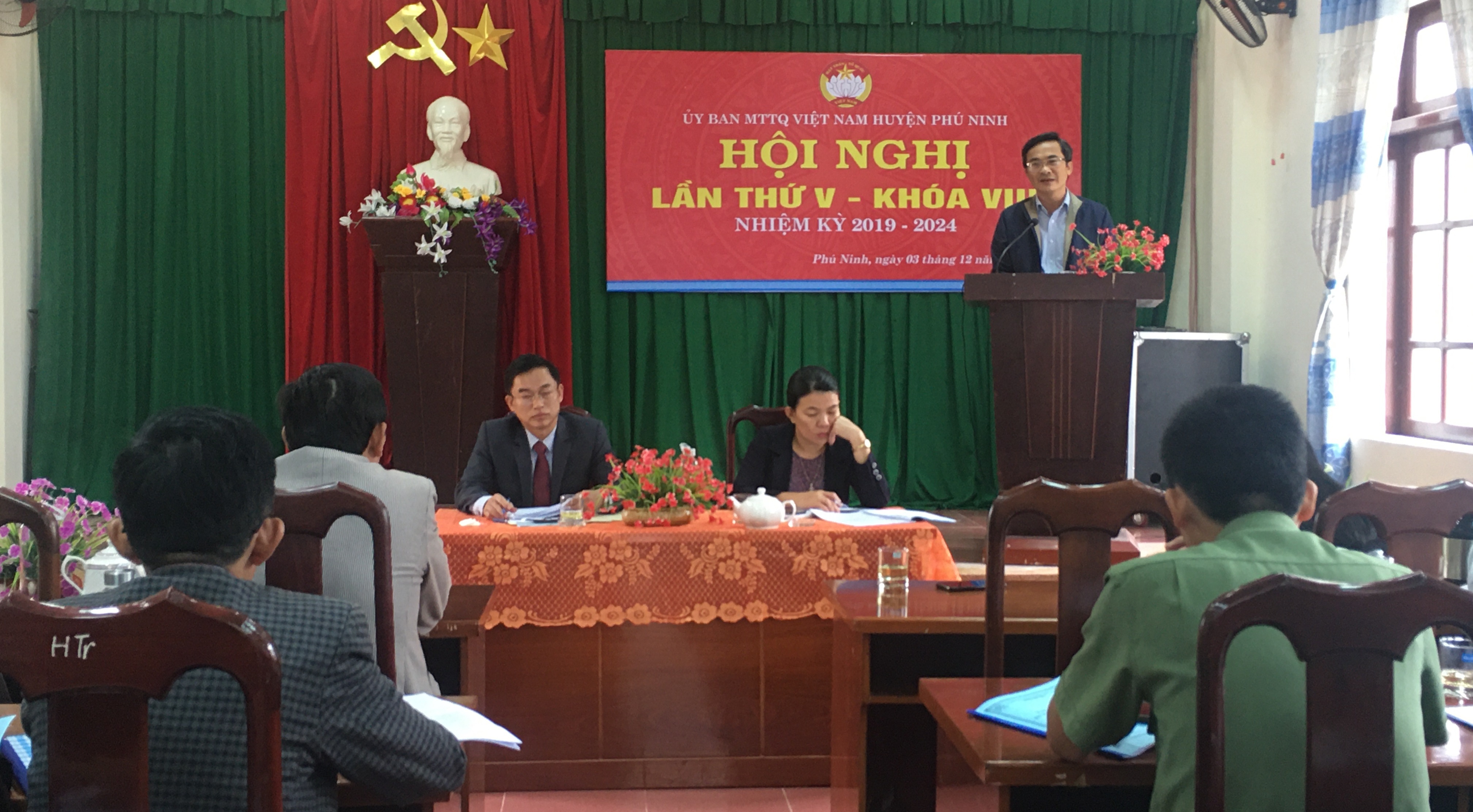 Sáng ngày 03/12/2020, Ủy ban MTTQ Việt Nam huyện Phú Ninh tổ chức Hội nghị lần thứ 5, khóa VIII, nhiệm kỳ 2019-2024. Về dự hội nghị có ông Nguyễn Phi Hùng-Phó Chủ tịch Ủy ban MTTQ Việt Nam tỉnh Quảng Nam; ông Phan Thanh Thám-UVTV, Phó Chủ tịch HĐND huyện, bà Nguyễn Thị Ngọc Vân-UVTV-PCT UBND huyện cùng các vị là Ủy viên Ủy ban MTTQ Việt Nam huyện nhiệm kỳ 2019-2024.