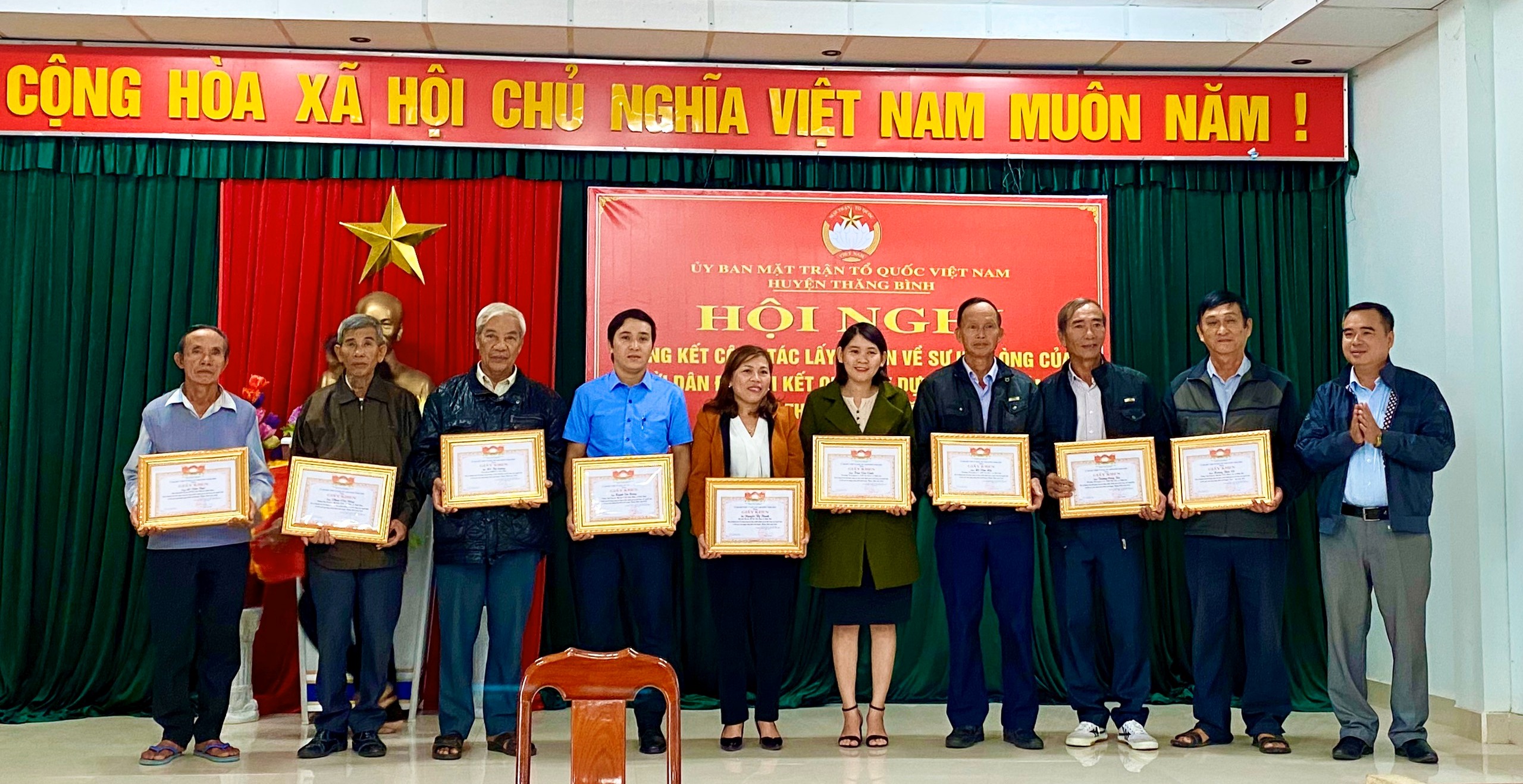Cũng tại Hội nghị tổng kết, Ban Thường trực Ủy ban MTTQ Việt Nam huyện đã khen thưởng cho 05 tập thể và 09 cá nhân có thành tích tốt trong công  tác triển khai lấy ý kiến hài lòng của người dân về kết quả xây dựng nông thôn mới huyện Thăng Bình năm 2020.