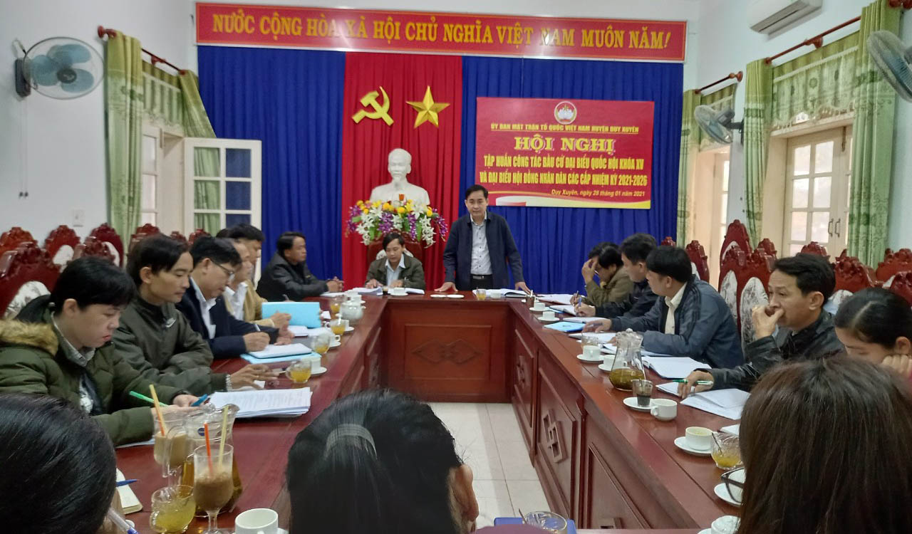 Tại hội nghị, Ban Thường trực Ủy ban MTTQ Việt Nam huyện đã quán triệt các văn bản lãnh đạo, chỉ đạo của Đảng, Nhà nước, MTTQ Việt Nam về triển khai cuộc bầu cử và hướng dẫn nhiệm vụ công tác Mặt trận tham gia cuộc bầu cử đại biểu Quốc hội khóa XV và đại biểu HĐND các cấp nhiệm kỳ 2021-2026; trong đó tập trung hướng dẫn thực hiện quy trình hiệp thương giới thiệu người ứng cử đại biểu HĐND các cấp nhiệm kỳ 2021-2026, hội nghị cử tri, các hội nghị tiếp xúc cử tri để vận động bầu cử, tuyên truyền và tổ chức các hoạt động kiểm tra, giám sát việc bầu cử của MTTQ. Tại hội nghị, các đại biểu cũng đã trao đổi, thảo luận những vướng mắc trong công tác triển khai bầu cử tại địa phương.