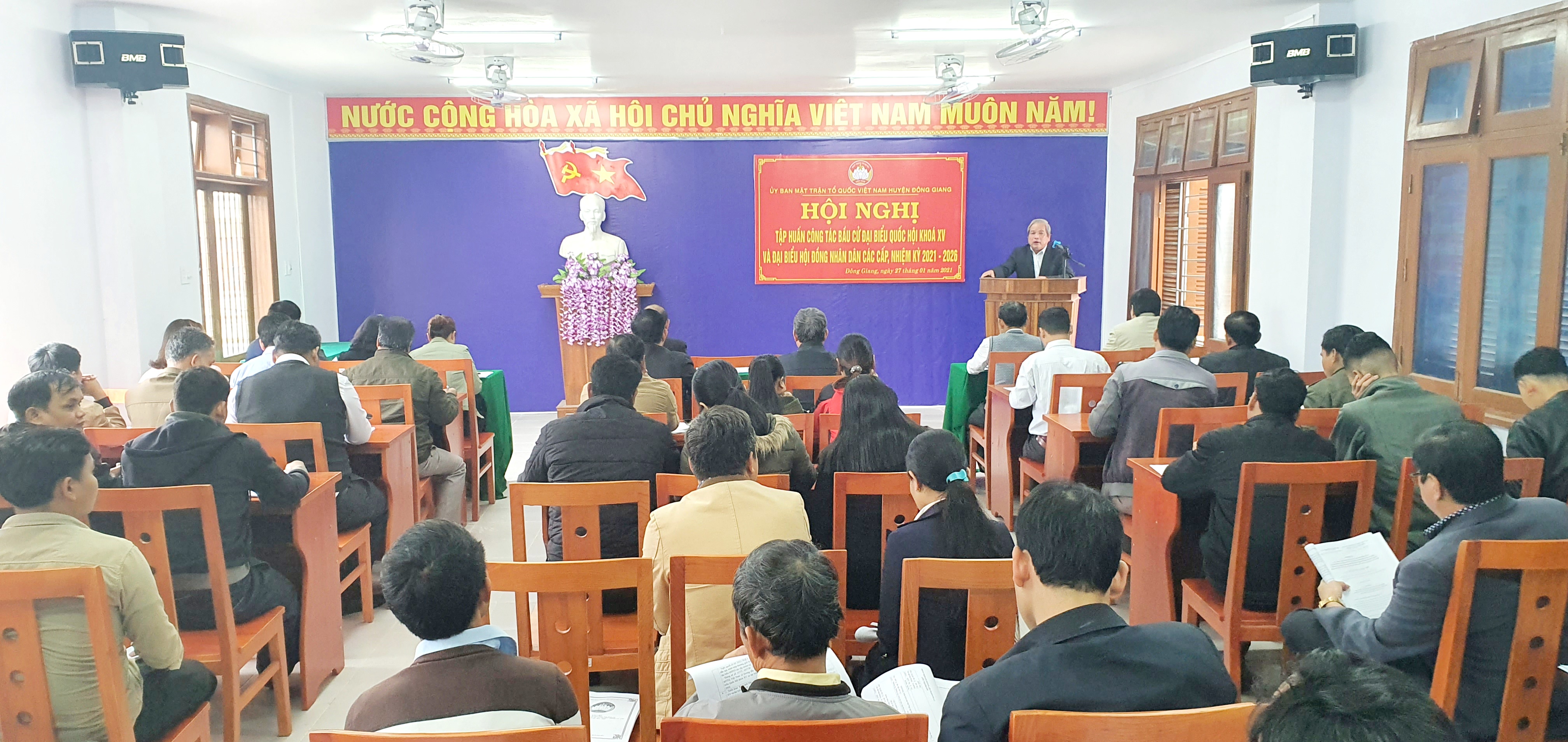 * Đông Giang: Ngày 27/01/2021, Ban Thường trực Ủy ban MTTQ Việt Nam huyện tổ chức hội nghị tập huấn công tác bầu cử đại biểu Quốc hội khóa XV và đại biểu HĐND các cấp, nhiệm kỳ 2021-2026. Tham dự hội nghị gồm có 78 vị gồm đại diện lãnh đạo các tổ chức chính trị xã hội huyện, Ban Thường trực Ủy ban MTTQ Việt Nam 10 xã, thị trấn và 40 Ban Công tác Mặt trận ở Khu dân cư.
