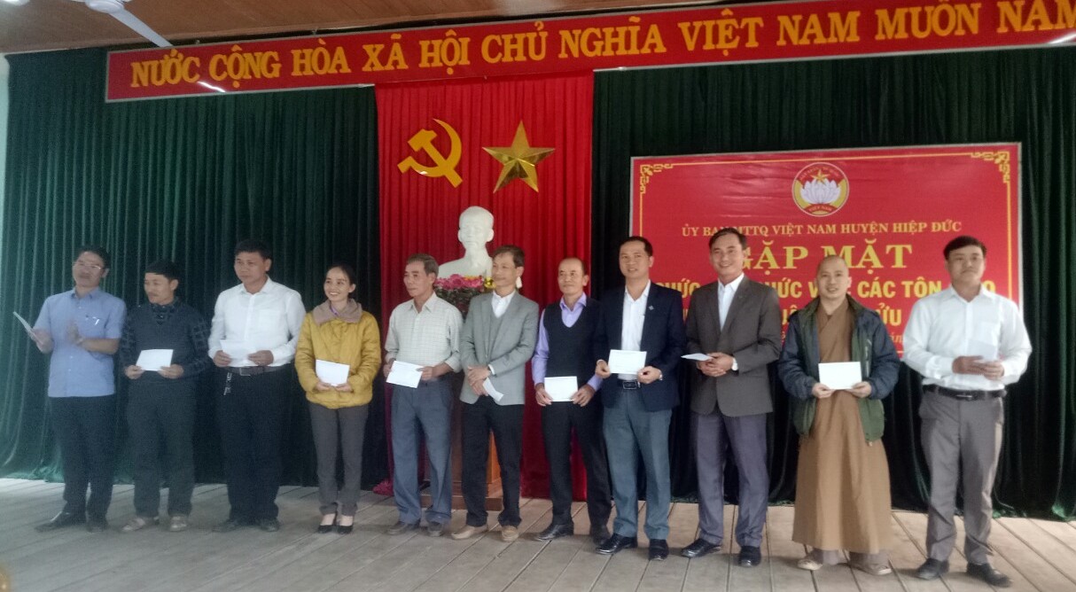Nhân dịp xuân Tân Sửu - 2021, đại diện Lãnh đạo huyện và Lãnh đạo Ban Tôn giáo huyện đã trao quà Tết và có lời chúc tốt đẹp đến toàn thể chức sắc, chức việc và tín đồ các tôn giáo trên địa bàn huyện./.