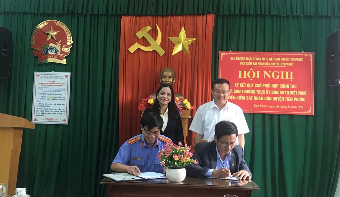 Lễ ký kết Quy chế phối hợp giữa Ủy ban MTTQ Việt Nam huyện với Viện Kiểm sát nhân dân huyện Tiên Phước
