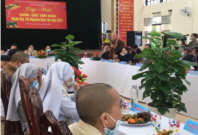 Tại buổi gặp mặt, ông Vũ Văn Thẩm-Tỉnh ủy viên-Bí thư Huyện ủy bày tỏ mong muốn các chức sắc cùng tín đồ các tôn giáo tiếp tục đồng hành cùng với Đảng, chính quyền và nhân dân trong huyện để chăm lo cho người nghèo, vận động đồng bào trong đạo tham gia thực hiện Cuộc vận động “Toàn dân đoàn kết xây dựng nông thôn mới, đô thị văn minh”. Ông cũng khẳng định những thành quả đạt được trong năm qua có sự đóng góp của các vị chức sắc, chức việc, nhà tu hành và tín đồ các tôn giáo.