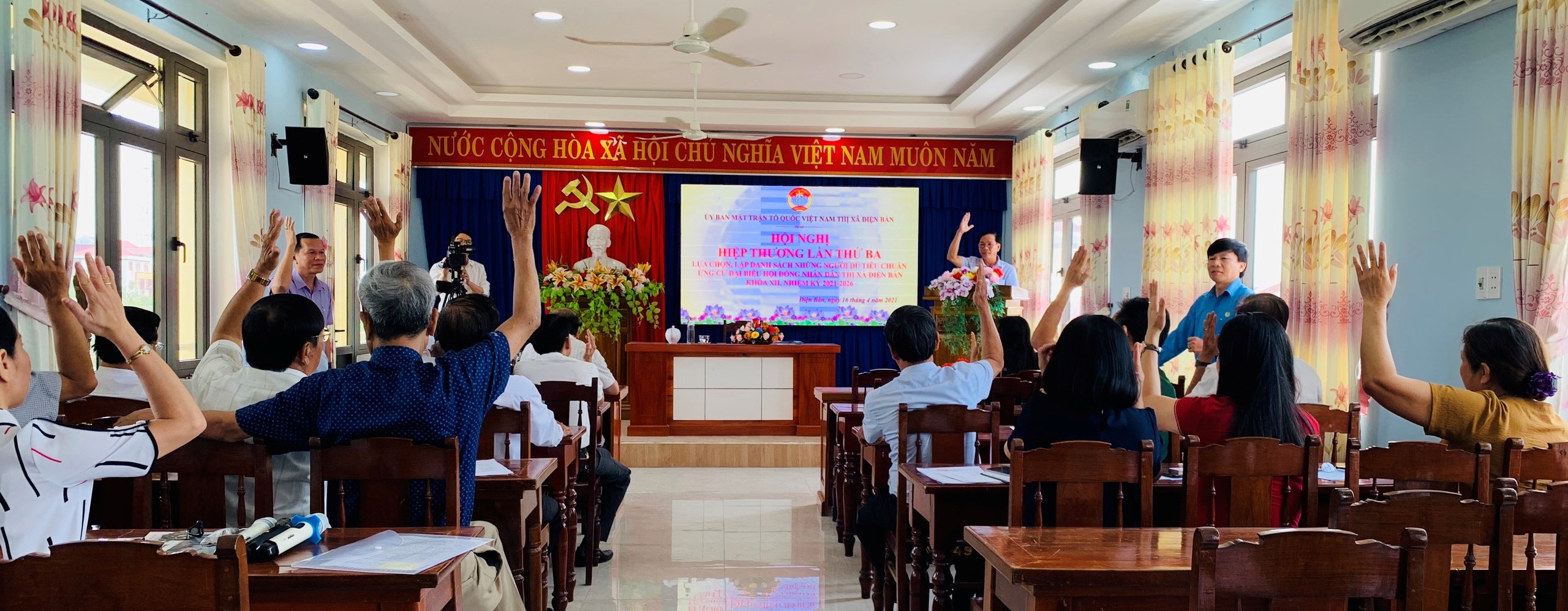 Với tinh thần dân chủ, trách nhiệm, Hội nghị đã tập trung thảo luận, thỏa thuận và biểu quyết cho 03 trường hợp có đơn thôi tham gia ứng cử và thống nhất lập danh sách những người đủ tiêu chuẩn ứng cử đại biểu HĐND thị xã Điện Bàn khoá XII nhiệm kỳ 2021 – 2026 gồm 56 người để bầu ra 35 đại biểu với cơ cấu: tỷ lệ nữ đạt 39,28%, tỷ lệ trẻ tuổi (dưới 40 tuổi) đạt 42,86%, người ngoài Đảng 10,71 %, tái cử 26,79%.