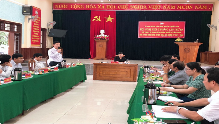 Từ ngày 22/3/2021 đến ngày 12/4/2021, Ban Thường trực Ủy ban MTTQ Việt Nam cấp xã phối hợp với UBND cùng cấp triệu tập và chủ trì 26 hội nghị cử tri nơi cư trú của 48 người ứng cử đại biểu HĐND huyện khóa XII tại 26 thôn, tổ dân phố trên địa bàn 13 xã, thị trấn. Hội nghị cử tri nơi cư trú được tổ chức đảm bảo thời gian, nội dung, chương trình; cử tri tham dự đông đủ và phát biểu ý kiến nhận xét đối với những người ứng cử một cách thẳng thắn, dân chủ, cởi mở; người ứng cử đại biểu HĐND huyện khóa XII có mặt đông đủ cùng với đại diện các cơ quan, tổ chức, đơn vị có người ứng cử.