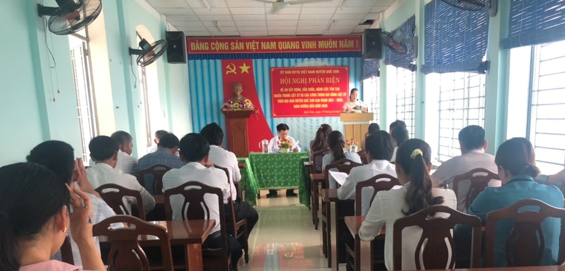Phát biểu khai mạc, ông Lý Xuân Phong - Chủ tịch Ủy ban MTTQ Việt Nam huyện nêu mục đích, ý nghĩa, tầm quan trọng về việc tổ chức phản biện, đóng góp ý kiến vào Dự thảo “Đề án xây dựng, sửa chữa, nâng cấp, tôn tạo nghĩa trang liệt sỹ và các công trình ghi công liệt sỹ trên địa bàn huyện Quế Sơn giai đoạn 2021 - 2025, định hướng đến năm 2030”; gợi mở các nội dung trọng tâm cần thảo luận như: thực trạng hiện nay của các nghĩa trang liệt sỹ và các công trình ghi công liệt sỹ trên địa bàn huyện, quan điểm, mục tiêu, nội dung của đề án; đồng thời đề nghị các vị đại biểu phát huy dân chủ, tích cực tham gia góp ý, đề xuất những vấn đề chưa phù hợp với thực tiễn của địa phương góp phần hoàn thiện Dự thảo Đề án xây dựng, sửa chữa, nâng cấp, tôn tạo nghĩa trang liệt sỹ và các công trình ghi công liệt sỹ trên địa bàn huyện.