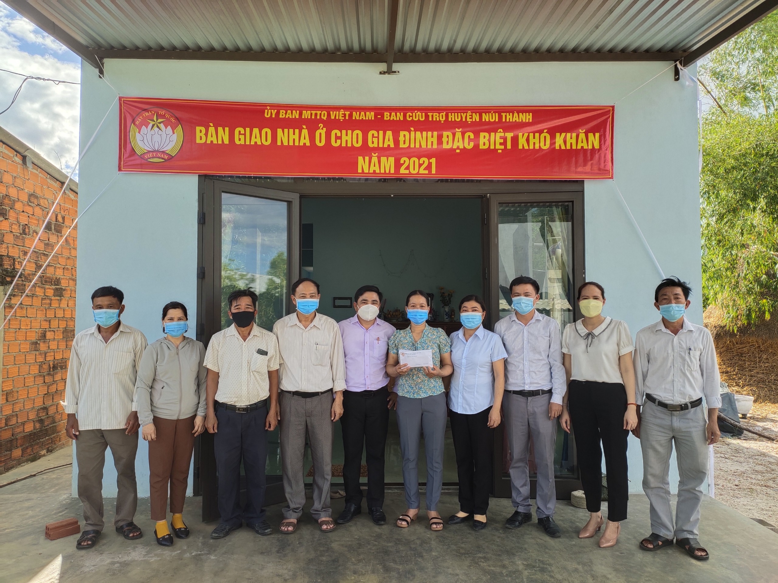 Đây là 1/93 ngôi nhà được Ban Cứu trợ tỉnh Quảng Nam giao cho huyện Núi Thành hỗ trợ những hộ gia đình có hoàn cảnh đặc biệt khó khăn bị thường xuyên ảnh hưởng bởi thiên tai. Ban Thường trực Ủy ban MTTQ Việt Nam huyện Núi Thành tiếp tục kêu gọi các doanh nghiệp, nhà hảo tâm hỗ trợ thêm nhằm giúp đỡ những gia đình có hoàn cảnh khó khăn bị ảnh hưởng thiên tai có điều kiện xây dựng lại nhà ở, ổn định cuộc sống.