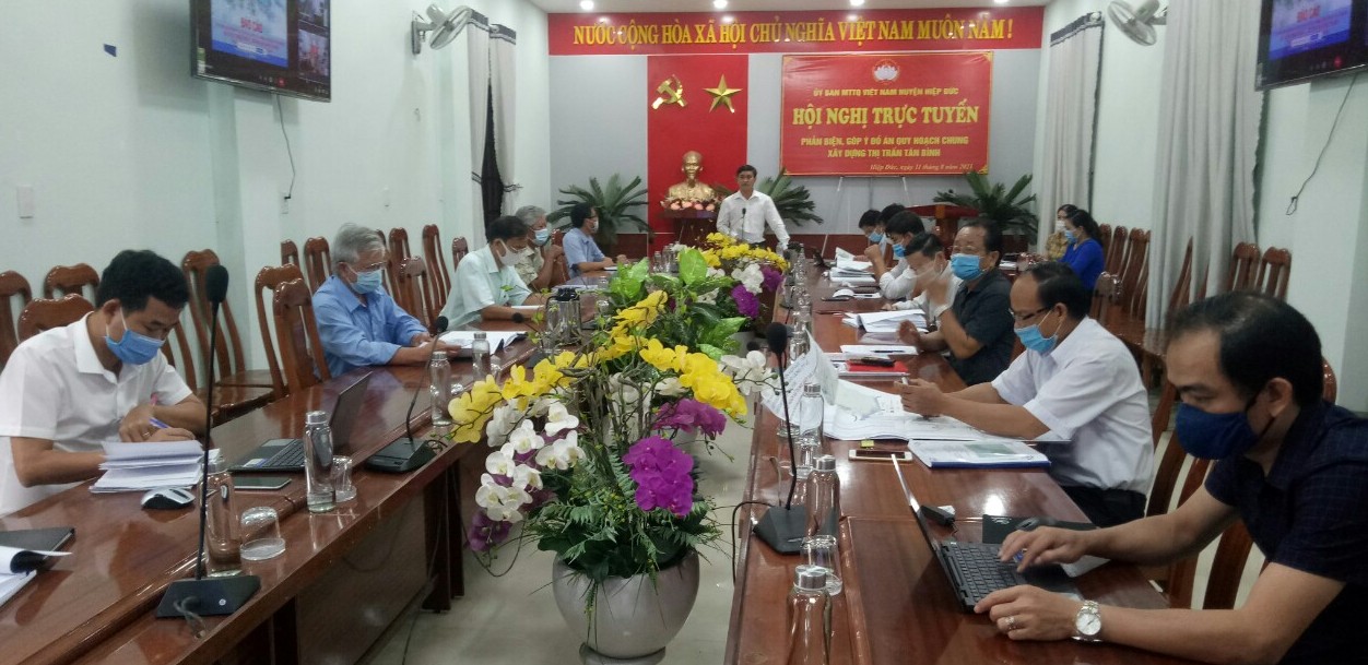 Sáng ngày 11/8/2021, Ban Thường trực Ủy ban MTTQ Việt Nam huyện tổ chức hội nghị trực tuyến phản biện xã hội đối với Đồ án quy hoạch chung xây dựng thị trấn Tân Bình, huyện Hiệp Đức giai đoạn 2030-2035. Tham dự Hội nghị có Ban Tư vấn của Ủy ban MTTQ Việt Nam huyện; đại diện lãnh đạo UBND, Phòng KT&HT huyện, Viện Quy hoạch Đô thị và Nông thôn Quốc gia tại thành phố Đà Nẵng và lãnh đạo UBND, Ủy ban MTTQ Việt Nam thị trấn Tân Bình cùng dự.
