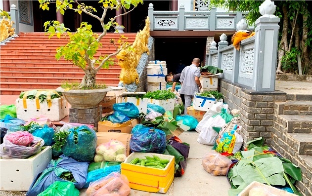 Chùa Minh Cẩm tập kết 5 tấn rau, củ quả ủng hộ nhân dân Đà Nẵng