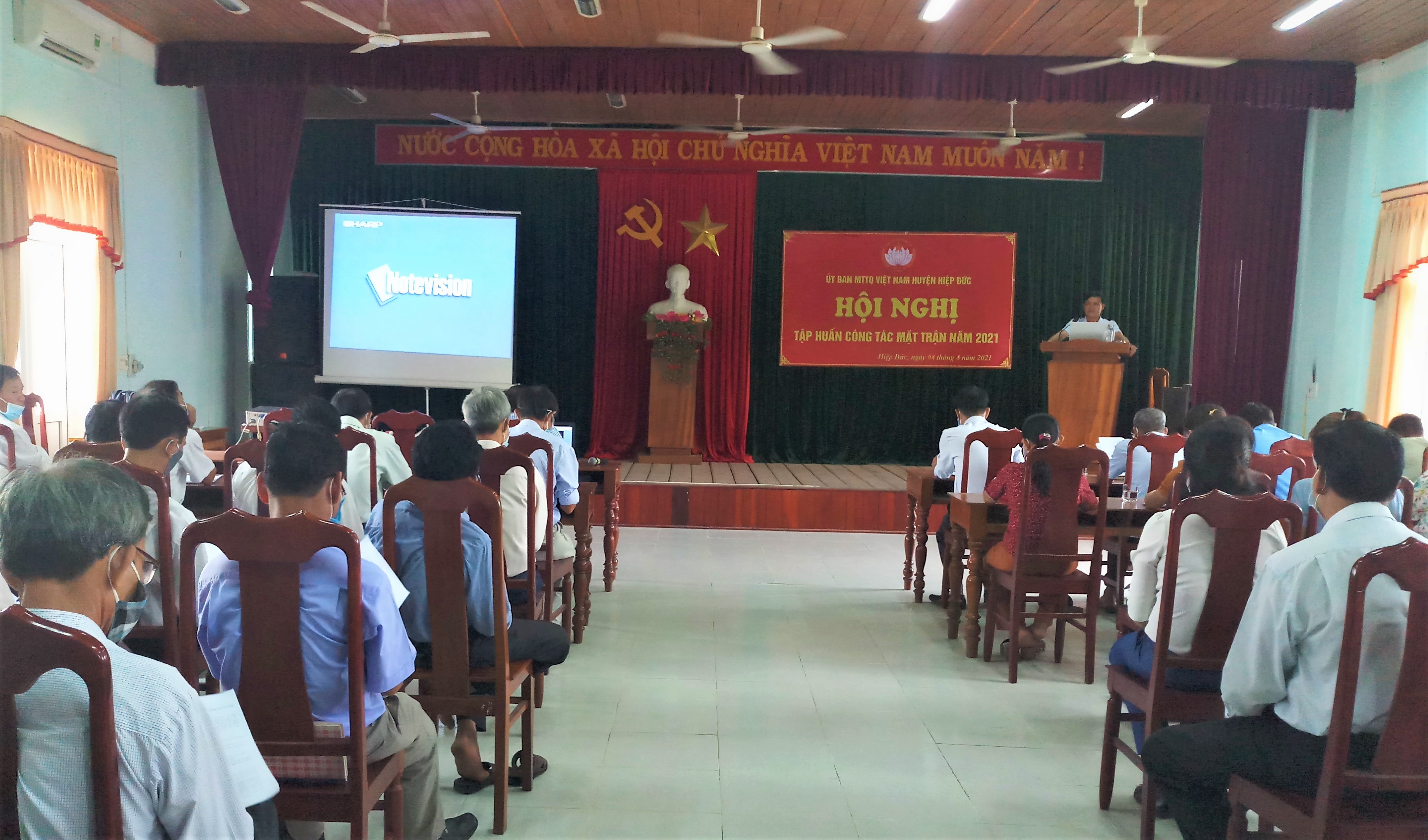 Ban Thường trực Ủy ban MTTQ Việt Nam huyện phối hợp với Phòng Tư pháp huyện tổ chức Hội nghị tập huấn công tác Mặt trận năm 2021 cho đội ngũ cán bộ Mặt trận Tổ quốc và cộng tác viên nắm bắt dư luận xã hội từ huyện đến cơ sở, khu dân cư, có 65 người tham dự.