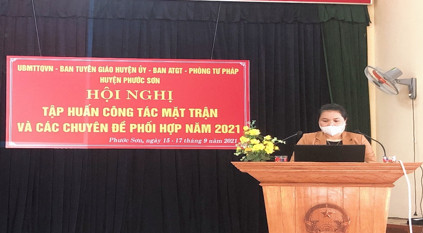 Ban Thường trực Ủy ban MTTQ Việt Nam huyện Phước Sơn chủ trì phối hợp với Ban Tuyên giáo Huyện ủy, Phòng Tư pháp huyện, Thanh tra huyện, Ban ATGT huyện tổ chức lớp tập huấn công tác Mặt trận và các chuyên đề phối hợp cho cán bộ Mặt trận Tổ quốc cơ sở và Trưởng ban Công tác Mặt trận khu dân cư năm 2021.