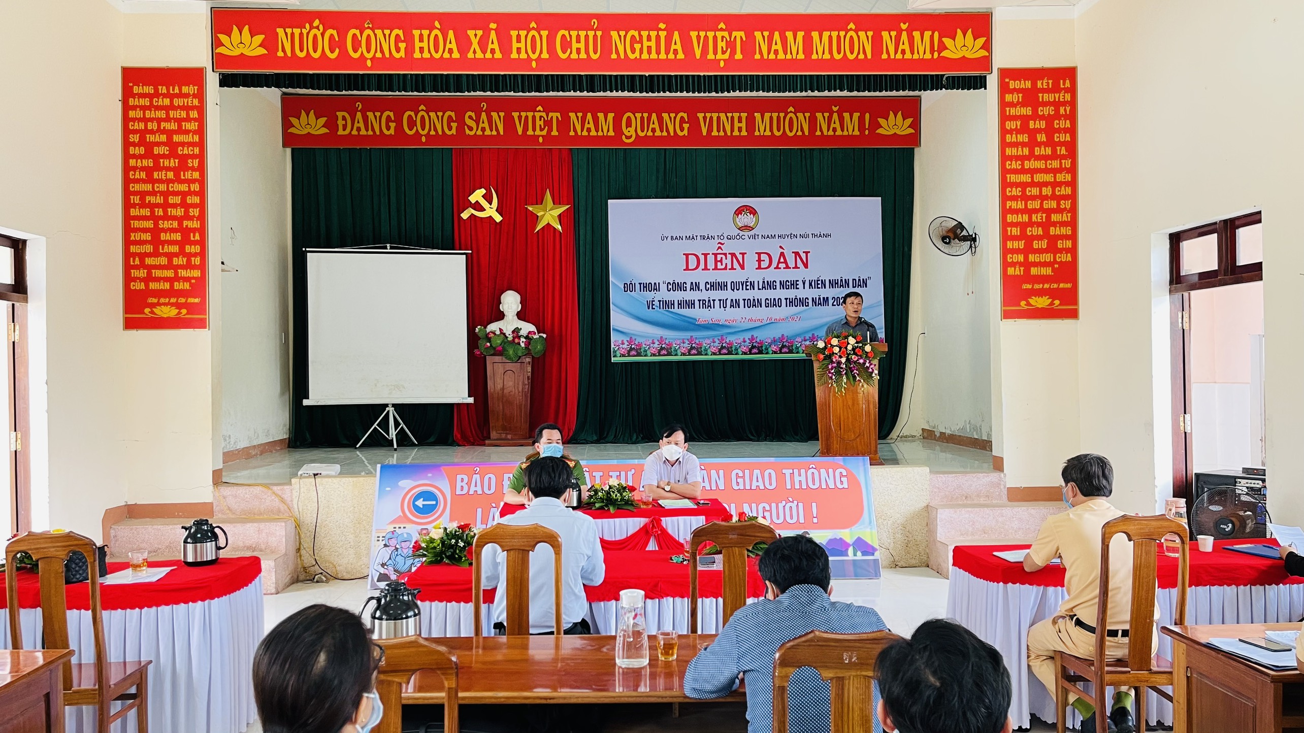 Vào chiều cùng ngày, Ban Thường trực Ủy ban MTTQ Việt Nam huyện Núi Thành tổ chức Núi Thành tổ chức diễn đàn đối thoại: “Công an, chính quyền lắng nghe ý kiến Nhân dân” về tình hình trật tự an toàn giao thông năm 2021 tại xã Tam Sơn. Đã có 5 lượt người ý kiến góp ý mang tính xây dựng cao, phản ánh tình hình trật tự an toàn giao thông cụ thể huyện đến xã, cơ bản xoay quanh các vấn đề: đường giao thông hư hại do sạt lở vào mùa mưa và do xe vận chuyển keo; các biển báo giao thông bị cây lấn che khuất; đường DH từ Dốc Mít (Tam Anh Nam) đến Tam Sơn đi lại quá khó khăn; hệ thống điện đường khoảng cách giữa các bóng đèn quá xa….