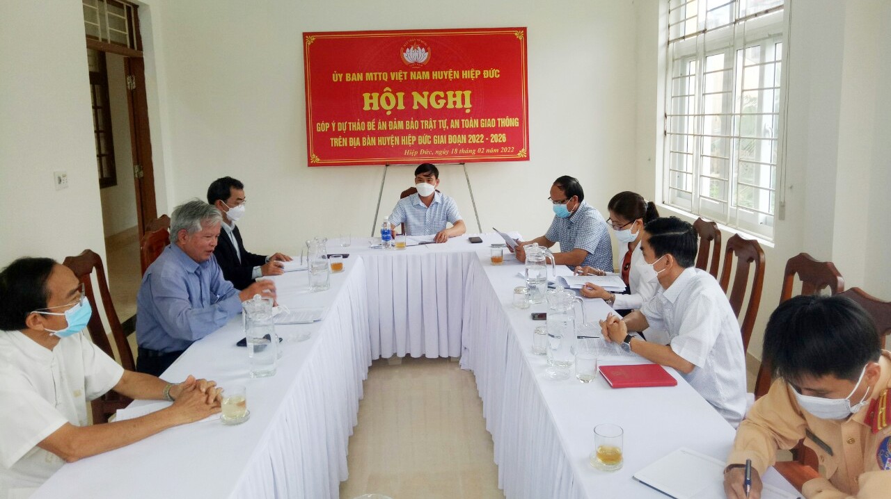 Vừa qua, Ban Thường trực, Ban Tư vấn của Ủy ban MTTQ Việt Nam huyện tổ chức hội nghị góp ý đối với Đề án đảm bảo trật tự an toàn giao thông trên địa bàn huyện Hiệp Đức giai đoạn 2022 -2026. Tham dự Hội nghị đại diện lãnh đạo Công an huyện- cơ quan tham mưu soạn thảo cùng dự.