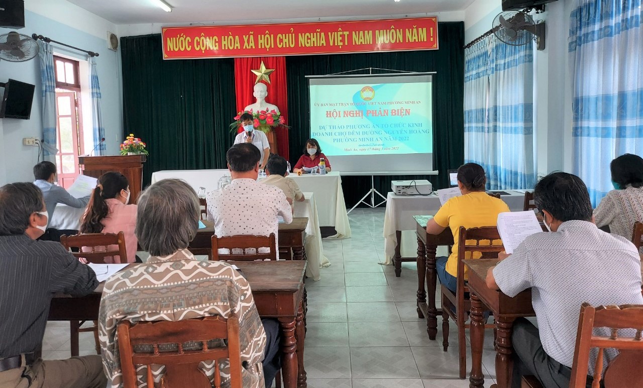 Sau khi nghe dự thảo phương án, các đại biểu và cử tri đã có nhiều ý kiến thảo luận nhiều nội dung như: nên giữ nguyên tên gọi “Chợ đêm đường Nguyễn Hoàng”, đồng thời không phát sinh mới các hộ kinh doanh. Chợ đêm hoạt động từ 16 giờ 30 đến 23 giờ. Địa phương cần bố trí thêm hệ thống nhà vệ sinh, tổ chức tốt công tác vệ sinh môi trường và quy định cụ thể về trang phục người bán hàng, quy cách xe đẩy, vị trí bố trí xe và các điều kiện phòng cháy chữa cháy, đường dây nóng liên lạc với tổ quản lý chợ. Đối với 42 xe đẩy, 7 ki-ốt đèn lồng thực hiện đăng ký kinh doanh theo quy định, có thể sang tên, chuyển nhượng nếu không có nhu cầu kinh doanh, riêng 107 lô vỉa hè chỉ được sang cho con, cháu trong gia đình nhưng phải có sự đồng ý của UBND phường...