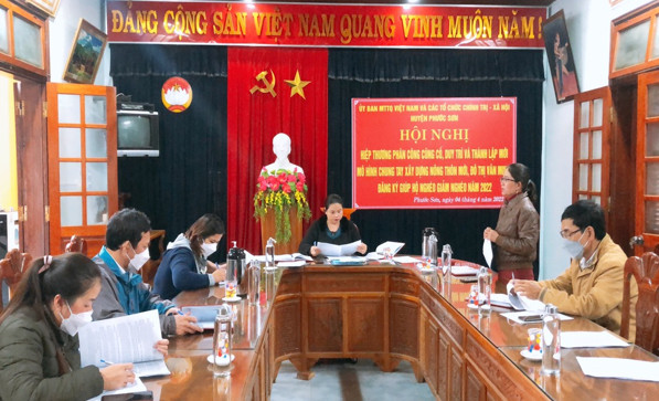 Trên cơ sở Chương trình phối hợp số 02/CTPH-MTTQ-CT-XH, ngày 06/5/2020 giữa Ủy ban MTTQ Việt Nam huyện với các tổ chức chính trị-xã hội huyện Phước Sơn, giai đoạn 2019-2024; Kế hoạch số 51-KH/HU, ngày 27/12/2021 của Huyện ủy về triển khai Mô hình thực hiện việc học tập, làm theo, nêu gương theo tư tưởng, đạo đức, phong cách Hồ Chí Minh trên địa bàn huyện Phước Sơn giai đoạn 2021-2025; Chương trình công tác trọng tâm năm 2022, hội nghị đã thảo luận, hiệp thương phân công, thống nhất thực hiện các nội dung củng cố, duy trì, nâng cao chất lượng và rà soát, lựa chọn thành lập mới mô hình chung tay xây dựng nông thôn mới, đô thị văn minh, giảm nghèo bền vững trong năm 2022...