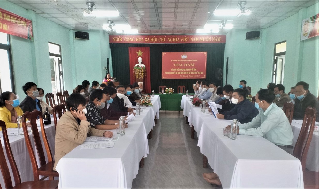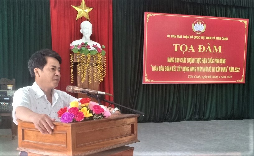 Phát biểu tại Tọa đàm, ông Võ Ngọc Lễ - Phó chủ tịch Ủy ban MTTQ Việt Nam huyện đã đánh giá cao vai trò phối hợp của các tổ chức thành viên Mặt trận trong quá trình triển khai thực hiện Cuộc vận động. Sự vào cuộc, ủng hộ của chính quyền, sự chỉ đạo quyết liệt của cấp ủy Đảng và đặc biệt sự năng động, nhiệt tình, trách nhiệm của Ban công tác Mặt trận ở khu dân cư, tạo được sự đồng thuận cao trong các tầng lớp nhân dân. Cuộc vận động “Toàn dân đoàn kết xây dựng nông thôn mới, đô thị văn minh” đã thực sự đem lại hiệu quả thiết thực, góp phần thực hiện thắng lợi các mục tiêu giảm nghèo, xây dựng nông thôn mới cũng như các chỉ tiêu, nhiệm vụ phát triển kinh tế - xã hội ở địa phương./.