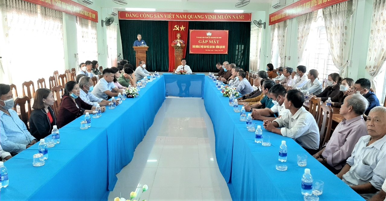 Dự buổi gặp mặt có Ông Phan Văn Dương - Phó Bí thư thường trực Huyện ủy; Ông Phùng Văn Huy - Ủy viên Ban Thường vụ - Phó Chủ tịch UBND huyện. Đại diện lãnh đạo các cơ quan: Ban Dân vận huyện ủy, Công an huyện, Phòng nội vụ, Liên đoàn Lao động huyện, Hội Nông dân, Đoàn Thanh niên, Hội Liên hiệp Phụ nữ, Hội Cựu chiến binh. Ông Nguyễn Chính, Ủy viên Ban Thường vụ, Trưởng Ban Dân vận, Chủ tịch Ủy ban MTTQ Việt Nam huyện chủ trì buổi gặp mặt;