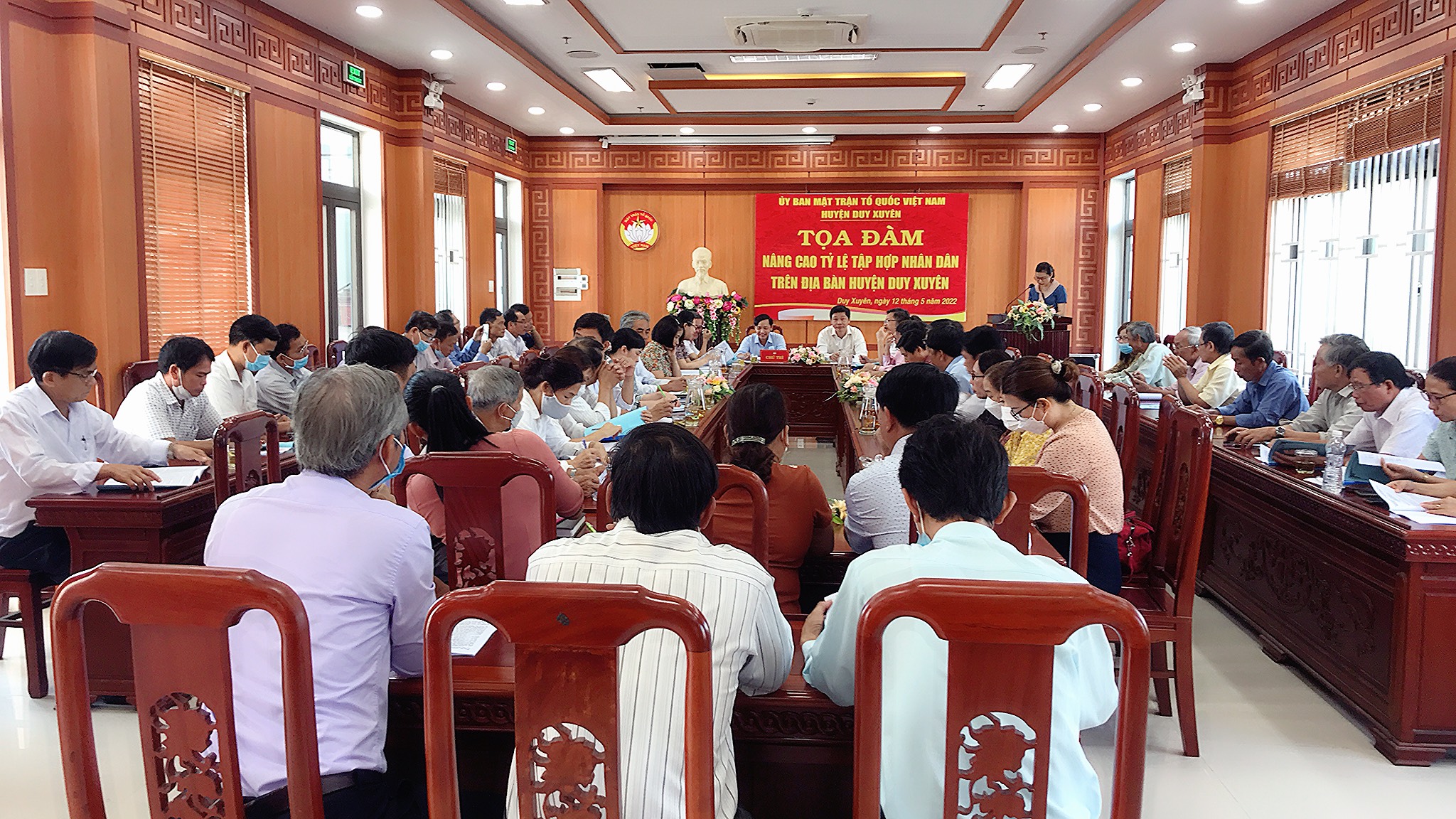 Trong những năm qua, Mặt trận và các đoàn thể từ huyện đến cơ sở đã làm tốt công tác tuyên truyền, vận động, tập hợp Nhân dân để phổ biến đường lối, chủ trương của Đảng, chính sách pháp luật của Nhà nước, thực hiện tốt các nhiệm vụ tại địa phương,… góp phần tích cực trong kết quả xây dựng huyện Duy Xuyên đạt chuẩn Nông thôn mới; nắm bắt tâm tư, nguyện vọng, kiến nghị của Nhân dân để kịp thời phản ánh đến các cơ quan Đảng, Chính quyền và Mặt trận cấp trên. Tuy nhiên, cũng cần thẳng thắn thừa nhận rằng, bên cạnh những kết quả đạt được, công tác vận động tập hợp đoàn viên, hội viên và Nhân dân tham gia các cuộc sinh hoạt, hội họp, tiếp xúc cử tri trên địa bàn huyện tỷ lệ còn khá thấp, chỉ đạt khoảng 43,7%.