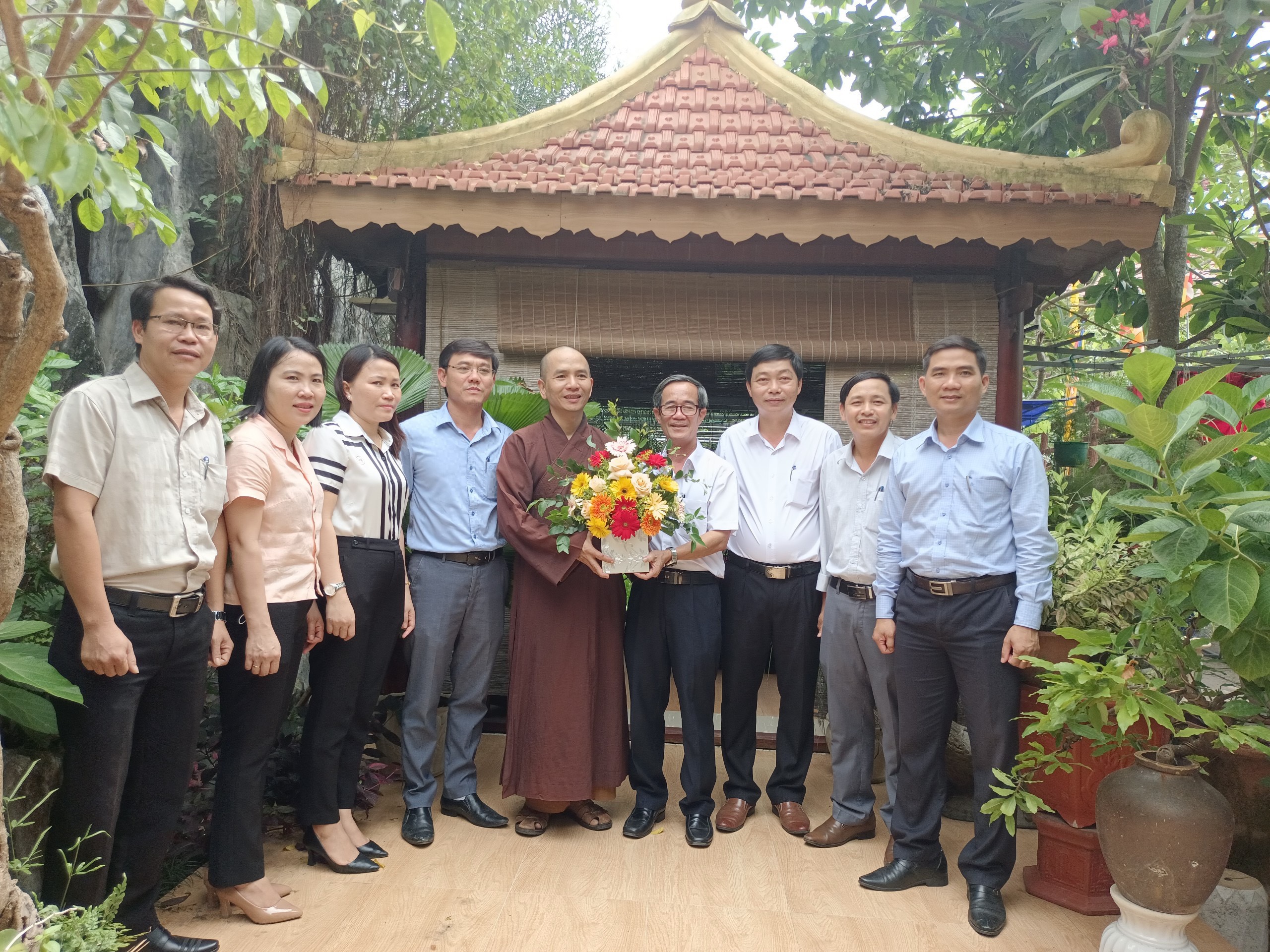 Đoàn lãnh đạo huyện do ông Nguyễn Thanh Phong - UVBTV, Chủ tịch UBMTTQVN huyện làm trưởng đoàn đến tặng hoa chúc mừng tại Chùa Bình Hải, xã Bình Hải