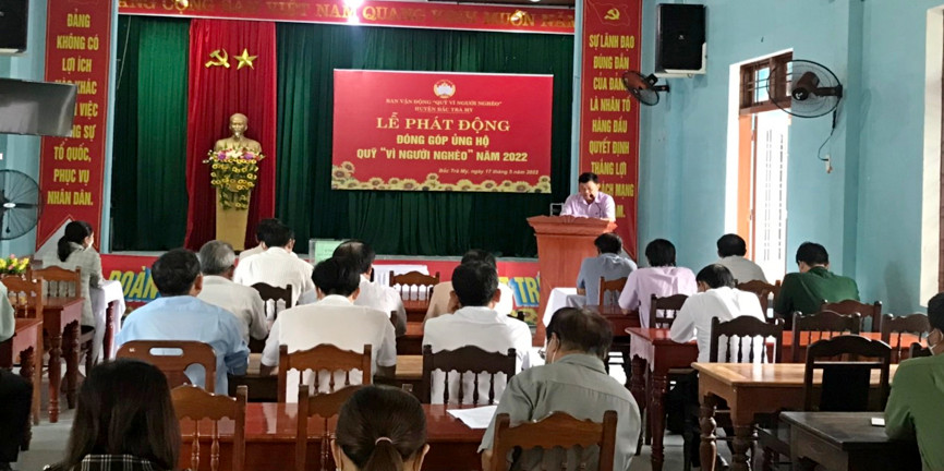 Sáng ngày 17/05, Uỷ ban MTTQ Việt Nam huyện Bắc Trà My (Cơ quan Thường trực Ban vận động Quỹ “Vì người nghèo” huyện) tổ chức Lễ phát động đóng góp ủng hộ Quỹ “vì người nghèo” năm 2022