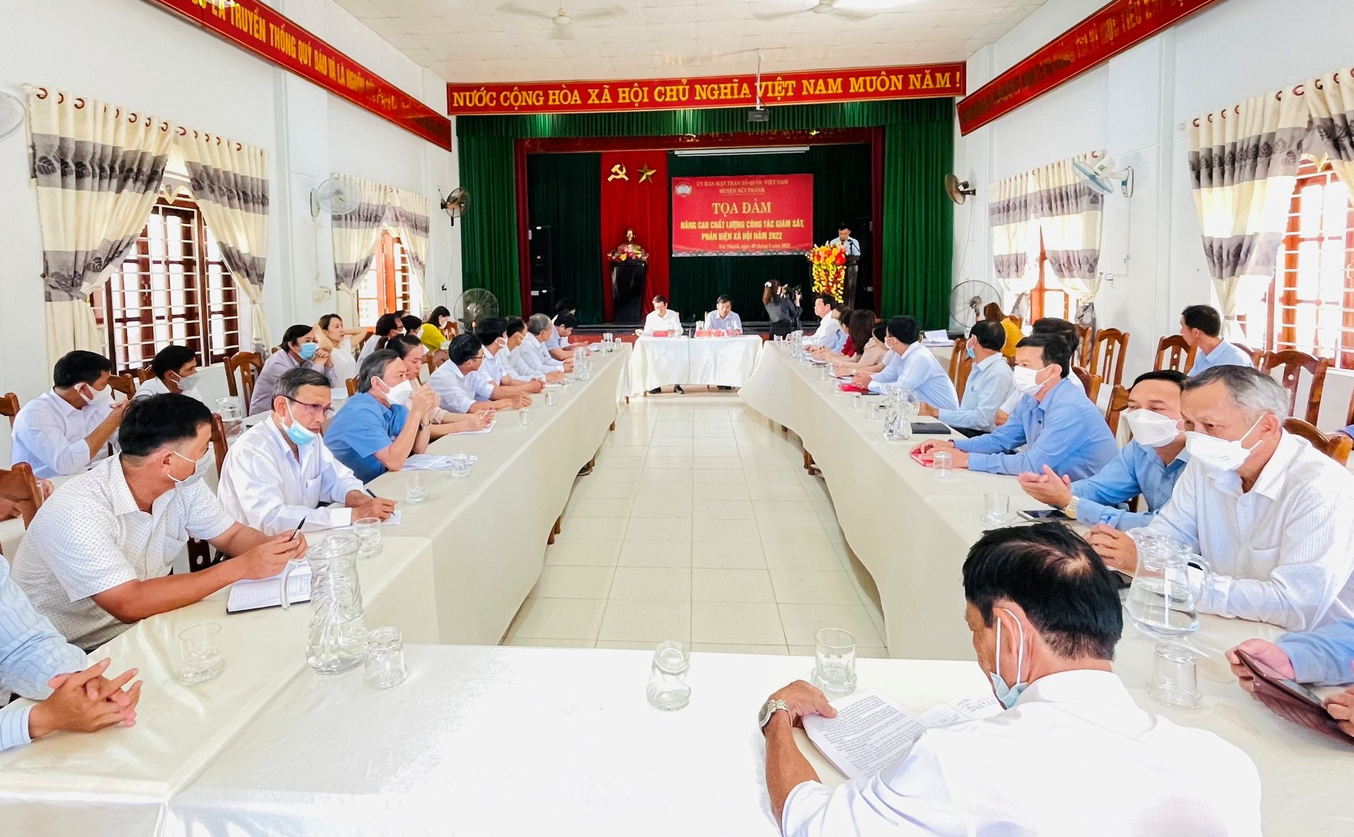 Về dự buổi Tọa đàm có các vị đại biểu lãnh đạo BTV Huyện ủy, HĐND huyện, UBND huyện và các vị đại biểu trong BTT Ủy ban MTTQ Việt Nam huyện, các vị đại biểu lãnh đạo các hội, đoàn thể huyện. Về phía xã có các đại biểu là Chủ tịch, Phó Chủ tịch Ủy ban MTTQ Việt Nam 17 xã, thị trấn và đại biểu đại diện cho Ban Thanh tra nhân dân, Ban Giám sát đầu tư cộng đồng các xã.