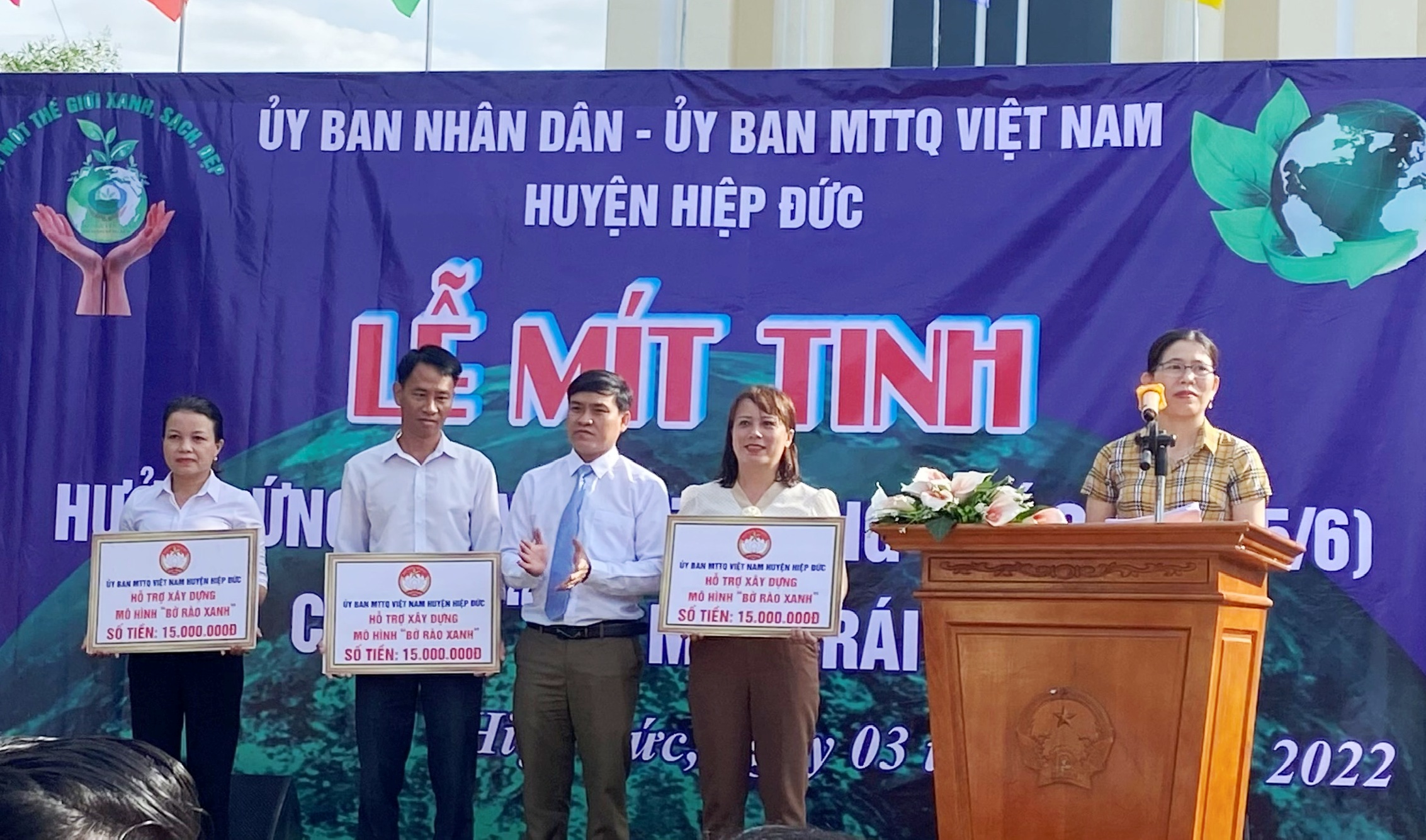 Nhân ngày môi trường thế giới (5/6), Ủy ban MTTQ Việt Nam các xã, thị trấn trên địa bàn huyện phối hợp với các tổ chức đoàn thể tổ chức lễ phát động, đồng loạt ra quân dọn vệ sinh hưởng ứng “Tháng hành động vì môi trường” và “Ngày môi trường thế giới năm 2022”. Vận động các cơ quan, đơn vị, tổ chức trên địa bàn huyện thực hiện tổng vệ sinh, trồng và chăm sóc cây xanh ở đơn vị mình. Phối hợp với các ngành, đoàn thể, tuyên truyền, vận động hội viên, đoàn viên và nhân dân dọn vệ sinh trên các tuyến đường liên thôn, liên xã, trồng mới 1.071 cây xanh, khơi thông cống rãnh thoát nước, sửa sang lại lề đường, tu bổ các công trình giao thông mà khu dân cư đăng ký tự bảo vệ, đặc biệt là ở các khu vực khu phố Nam Phước, chợ Huyện, chợ Trà Kiệu, chợ Phú Đa, chợ Bàn Thạch, chợ Nồi Rang...; các tụ điểm dân cư, các điểm đổ rác không theo quy định.