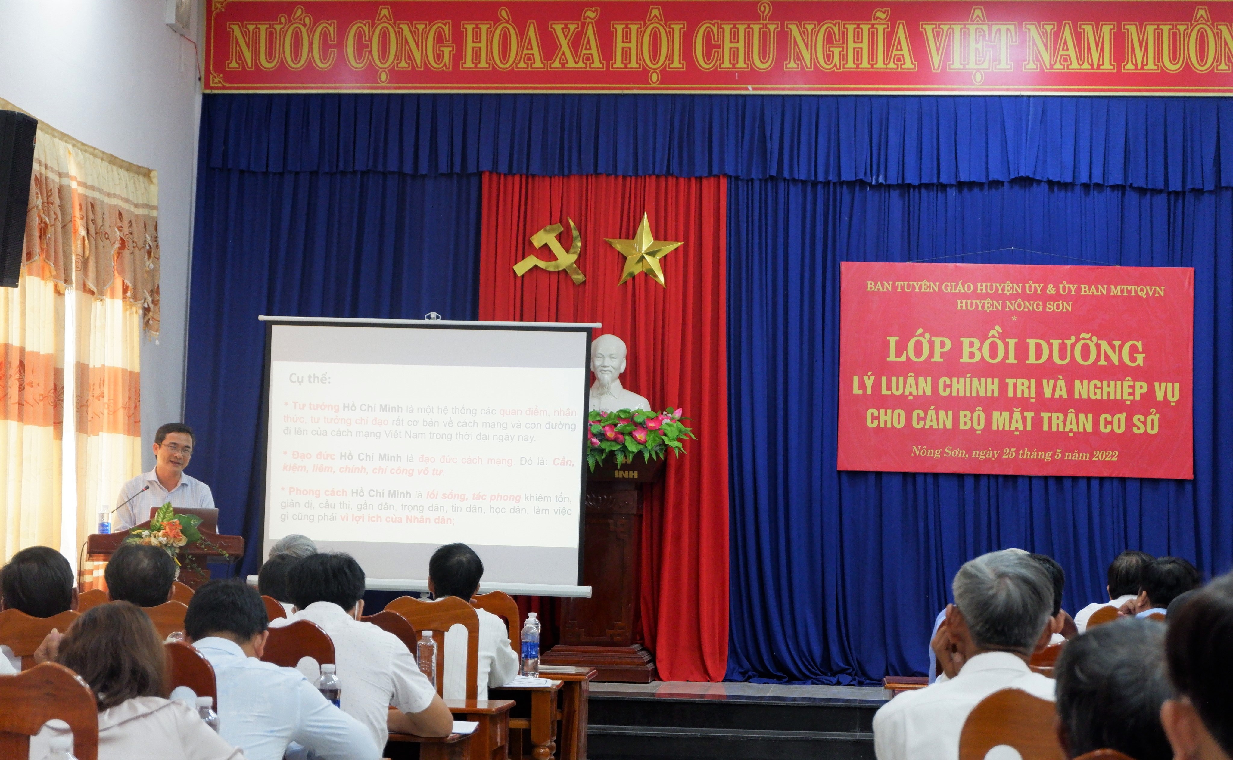 Trong tháng, Ban Thường trực Ủy ban MTTQ Việt Nam huyện Nông Sơn, Tiên Phước phối hợp với Ban Tuyên giáo Huyện ủy tổ chức lớp bồi dưỡng lý luận chính trị và tập huấn nghiệp vụ cho cán bộ Mặt trận cơ sở năm 2022.