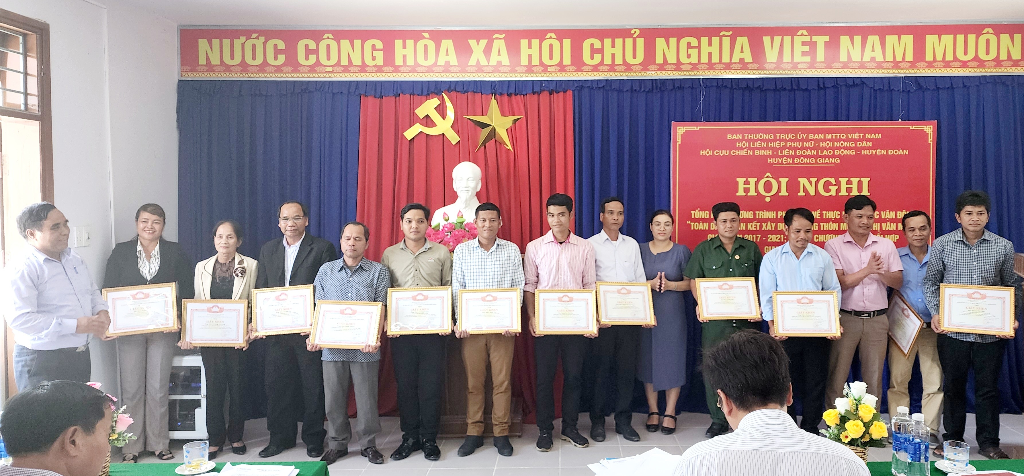 Tại hội nghị, Ủy ban Mặt trận Tổ quốc Việt Nam huyện đã tặng giấy khen cho 6 tập thể và 17 cá nhân đã có thành tích xuất sắc trong cuộc vận động “toàn dân đoàn kết xây dựng nông thôn mới, đô thị văn minh” giai đoạn 2017 – 2021.