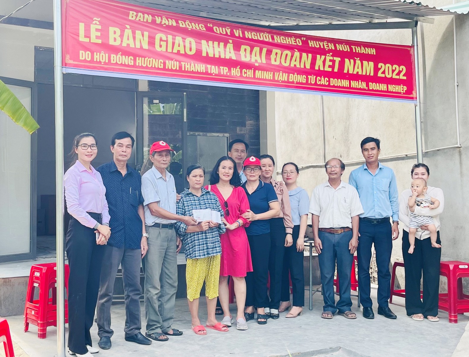 Chiều ngày 28/6/2022, Ban vận động Quỹ “Vì người nghèo” huyện Núi Thành phối hợp với Hội đồng hương Núi Thành tại thành phố Hồ Chí Minh tổ chức lễ bàn giao nhà Đại đoàn kết cho gia đình bà Trần Thị Hồng, thôn Vân Thạch, xã Tam Hiệp, huyện Núi Thành.