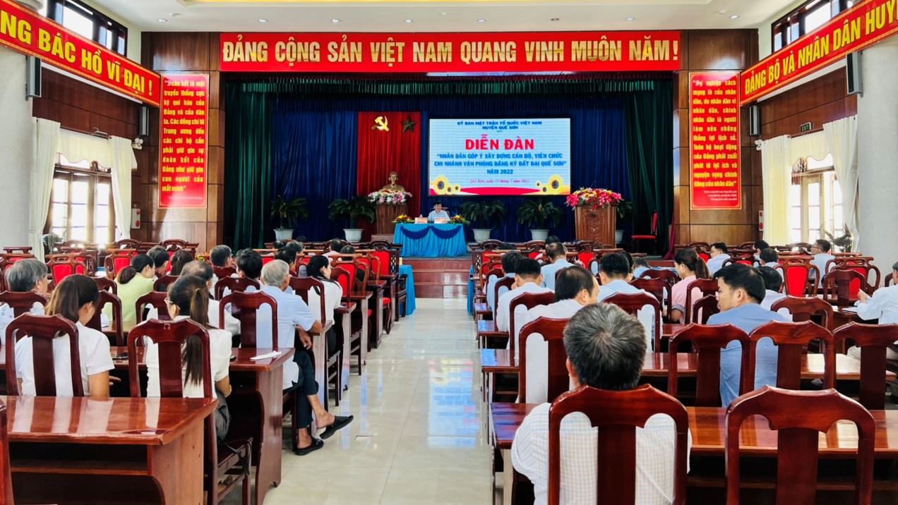 Tham dự Diễn đàn có ông Phạm Công Chung - Giám đốc Văn phòng đăng ký đất đai Quảng Nam, ông Đỗ Văn Thùy - Phó Giám đốc Văn phòng đăng ký đất đai Quảng Nam, bà Đặng Thị Thùy Vinh - UVBTV Huyện ủy, Trưởng Ban Dân vận Huyện ủy; ông Nguyễn Minh Châu - HUV, Phó Chủ tịch UBND huyện, ông Võ Trí Khánh - Giám đốc Chi nhánh Văn phòng đăng ký đất đai Quế Sơn; các vị đại biểu lãnh đạo các đoàn thể chính trị - xã hội huyện; các ông, bà là thành viên Ban Tư vấn Dân chủ - Pháp luật Ủy ban MTTQ Việt Nam huyện, cán bộ, viên chức của Chi nhánh Văn phòng đăng ký đất đai Quế Sơn; các đại biểu là Chủ tịch, Phó chủ tịch Ủy ban MTTQ Việt Nam, cán bộ Địa chính 13 xã, thị trấn và hơn 80 đại biểu là nhân dân các xã Quế Châu, Quế Minh, Quế An, Quế Phong, Quế Long và thị trấn Đông Phú.