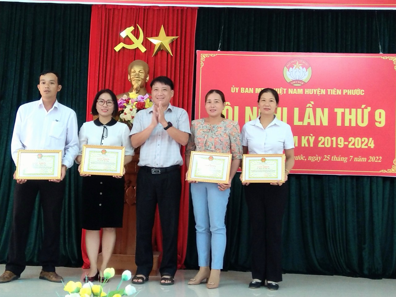 Nửa nhiệm kỳ qua, phát huy tinh thần của khối đại đoàn kết toàn dân tộc, tập trung đổi mới phương thức, đẩy mạnh công tác tuyên truyền, nâng cao chất lượng và hiệu quả, hoạt động công tác Mặt trận ngày càng khởi sắc. Củng cố đội ngũ cộng tác viên, kịp thời nắm bắt dư luận xã hội, phản ảnh tin bài, phát huy vai trò uy tím của các vị già làng, trưởng bản, các vị chức sắc chức việc trong tôn giáo. Triển khai cuộc vận động “Toàn dân đoàn kết xây dựng nông thôn mới, đô thị văn minh”, “Người Việt Nam ưu tiên dùng hàng Việt Nam”, vận động “Quỹ vì người nghèo”, công tác cứu trợ, phong trào “Đoàn kết sáng tạo”, chương trình “Mỗi xã một sản phẩm” gắn với việc thực hiện Đề án “Phát triển kinh tế vườn, kinh tế trang trại mang đặc trưng vùng Trung du xứ Quảng giai đoạn 2017-2025”. Đến nay, Tiên Phước đã có 11 xã về đích nông thôn mới. Phát huy dân chủ, tích cực chủ trì giám sát, tổ chức phản biện xã hội, tổ chức các diễn đàn góp ý đối thoại với người đứng đầu cấp ủy Đảng, Chính quyền, tham gia cuộc bầu cử Đại biểu Quốc hội và đại biểu HĐND các cấp nhiệm kỳ 2021-2026. Thường xuyên củng cố, kiện toàn đội ngủ cán bộ làm công tác Mặt trận từ huyện đến cơ sở. Hằng năm, tổ chức các hội nghị tập huấn bồi dưỡng nghiệp vụ. Kịp thời đề xuất các cấp khen thưởng, đồng thời Mặt trận huyện luôn quan tâm đến việc tuyên dương, khen thưởng cho các tập thể, cá nhân có thành tích xuất sắc trong thực hiện nhiệm vụ chuyên đề cũng như nhiệm vụ từng năm. Với kết quả nêu trên, Ủy ban MTTQ Việt Nam huyện Tiên phước hai năm liền được Ủy ban Trung ương Mặt trận Tổ quốc Việt Nam tặng Bằng khen, năm 2021 được UBND tỉnh tặng cờ dẫn đầu thi đua cụm 9 huyện miền núi.