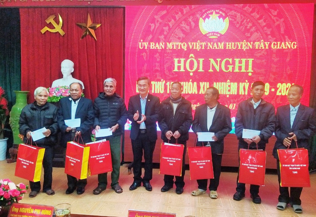 Dịp này, Hội nghị đã khen thưởng 07 tập thể và 05 cá nhân có thành tích xuất sắc trong công tác Mặt trận năm 2022; trao tặng 11 suất quà cho các vị già làng, người có uy tín trên địa bàn huyện Tây Giang.