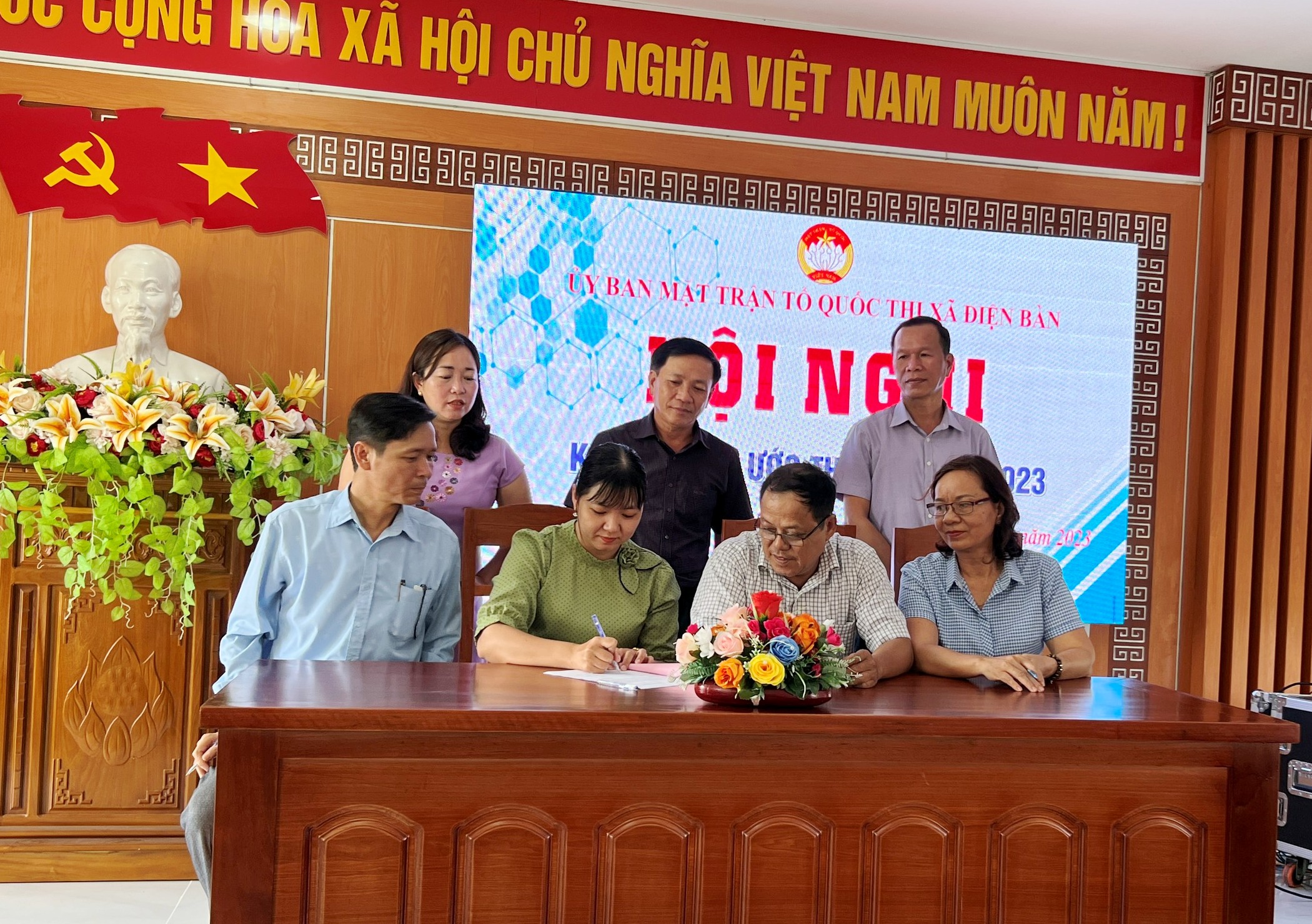 Chiều ngày 20/3/2023, Ban Thường trực Ủy ban MTTQ Việt Nam thị xã Điện Bàn tổ chức Hội nghị ký kết giao ước thi đua năm 2023 và giao ban công tác Mặt trận quý I năm 2023 với sự tham dự của các đồng chí trong Ban Thường trực Ủy ban MTTQ Việt Nam thị xã, Chủ tịch và Phó Chủ tịch Ủy ban MTTQ Việt Nam 20 xã phường.