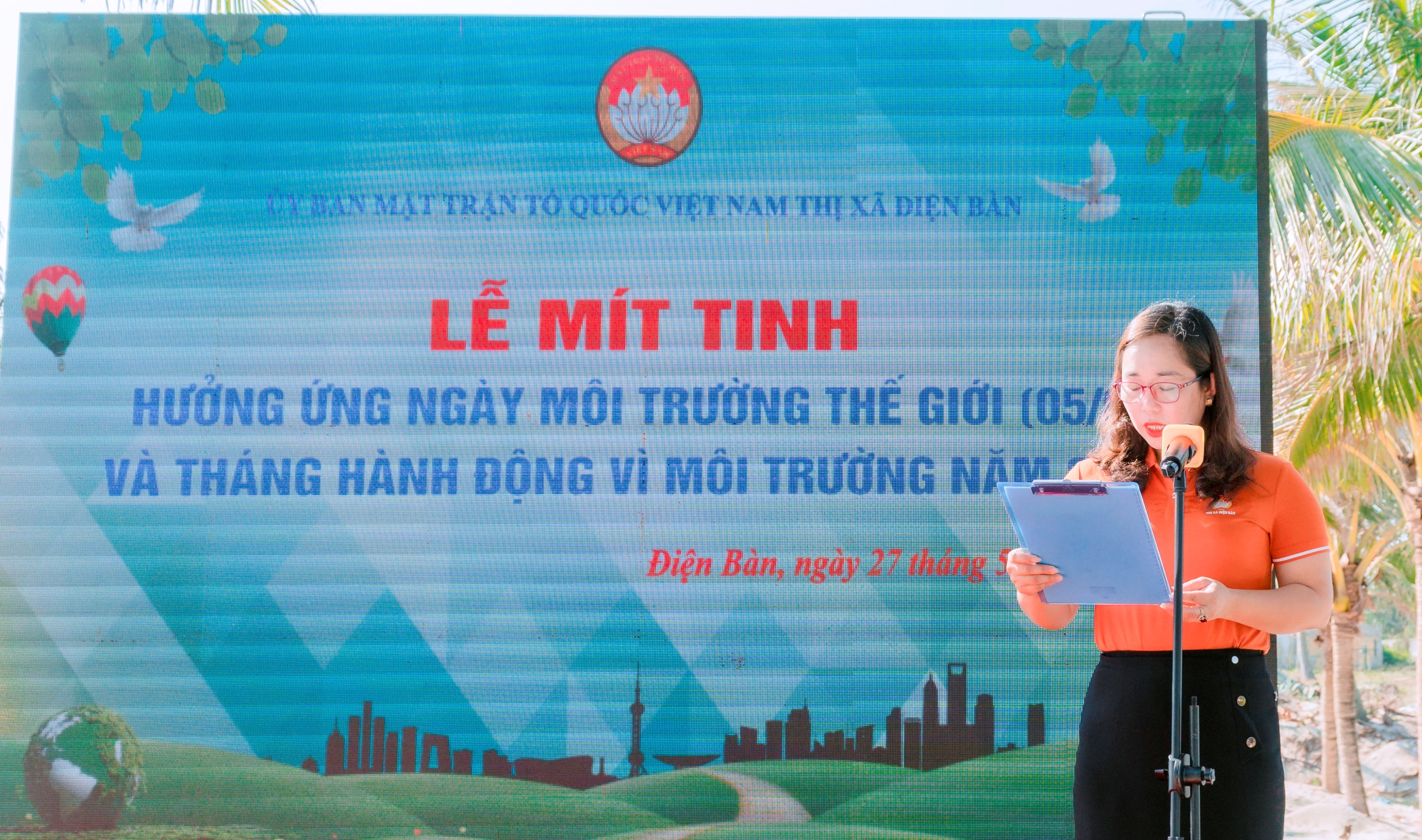 Tại lễ Míttinh, ông Trần Tấn Dũng - UVBTV Thành ủy, Chủ tịch Ủy ban MTTQ Việt Nam thành phố kêu gọi mỗi người - mỗi ngày bằng các hành động cụ thể, như: tham gia dọn vệ sinh trên địa bàn dân cư, cơ quan, đơn vị, trường học; trồng cây xanh; sửa chữa, cải tạo, xây mới các công trình nước sạch, nhà vệ sinh, chuồng trại chăn nuôi... chung tay bảo vệ môi trường thành phố. Chính hành động của mỗi người dân sẽ góp phần giữ cho cảnh quan thành phố được xanh - sạch - đẹp, phát triển bền vững, để Hội An luôn là điểm đến xanh trong mỗi du khách.