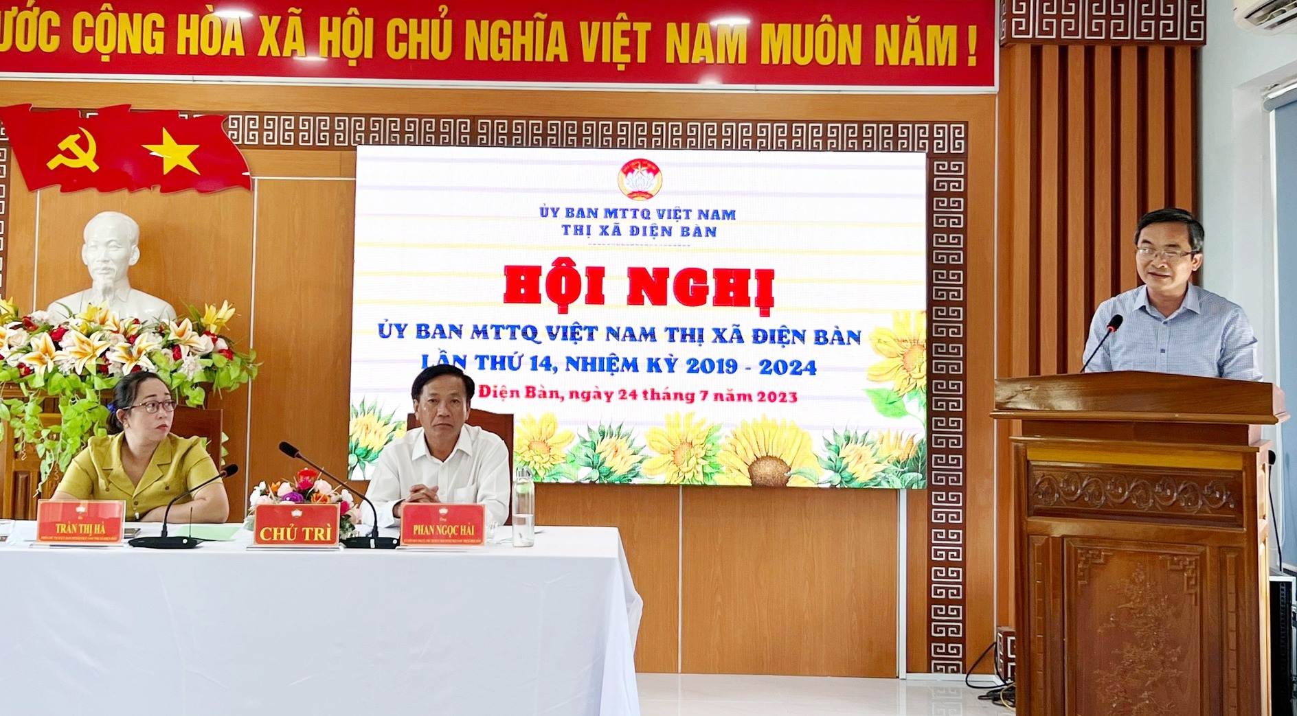 Phát biểu chỉ đạo tại Hội nghị, ông Nguyễn Phi Hùng - Phó Chủ tịch Thường trực Ủy ban MTTQ Việt Nam tỉnh, ông Trần Hải Vân - Phó Bí thư Thường trực Thị ủy đã đánh giá cao những kết quả đã đạt được của Mặt trận trong thời gian qua. Đồng thời, định hướng một số nhiệm vụ trọng tâm cần triển khai thực hiện trong gian đến./.
