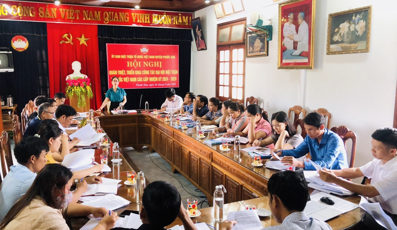 Tại hội nghị, đại diện Ban Thường trực Ủy ban MTTQ Việt Nam huyện đã quán triệt, triển khai các Chỉ thị của Bộ Chính trị, Tỉnh ủy và Chỉ thị số 29-CT/HU về lãnh đạo, chỉ đạo Đại hội MTTQ Việt Nam cấp cơ sở và Đại hội đại biểu MTTQ Việt Nam huyện lần thứ X, nhiệm kỳ 2024-2029; Đề án, Hướng dẫn củatrung ương, tỉnh về tổ chức Đại hội Mặt trận Tổ quốc các cấp và kế hoạchchuẩn bị và tổ chức Đại hội MTTQ Việt Nam cấp xã, thị trấn và Đại hội đại biểu MTTQ Việt Nam huyện lần thứ X, nhiệm kỳ 2024-2029.Phát biểu thảo luận, các đại biểu đã chia sẻ những vấn đề thực tiễn tại địa phương để cùng tìm giải pháp tháo gỡ, nhất là về công tác nhân sự; số lượng tái cử nhiệm kỳ mới; tỷ lệ người ngoài đảng tham gia ủy viên cấp xã, thị trấn; hội nghị Ban công tác Mặt trận; đề cương báo cáo chính trị trình tại đại hội, công tác trang trí, tuyên truyền Đại hội...