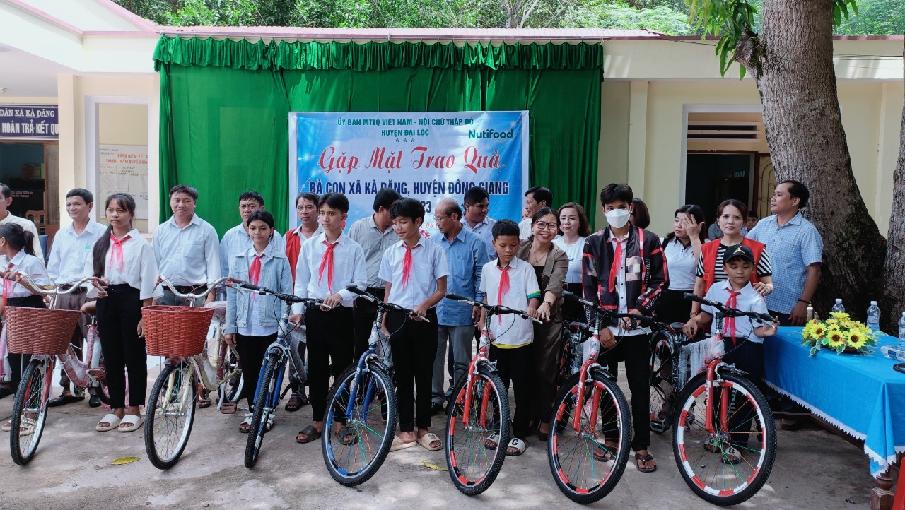 Đoàn công tác huyện Đại Lộc trao xe cho cá em học sinh xã Kà Dăng (Đông Giang)
