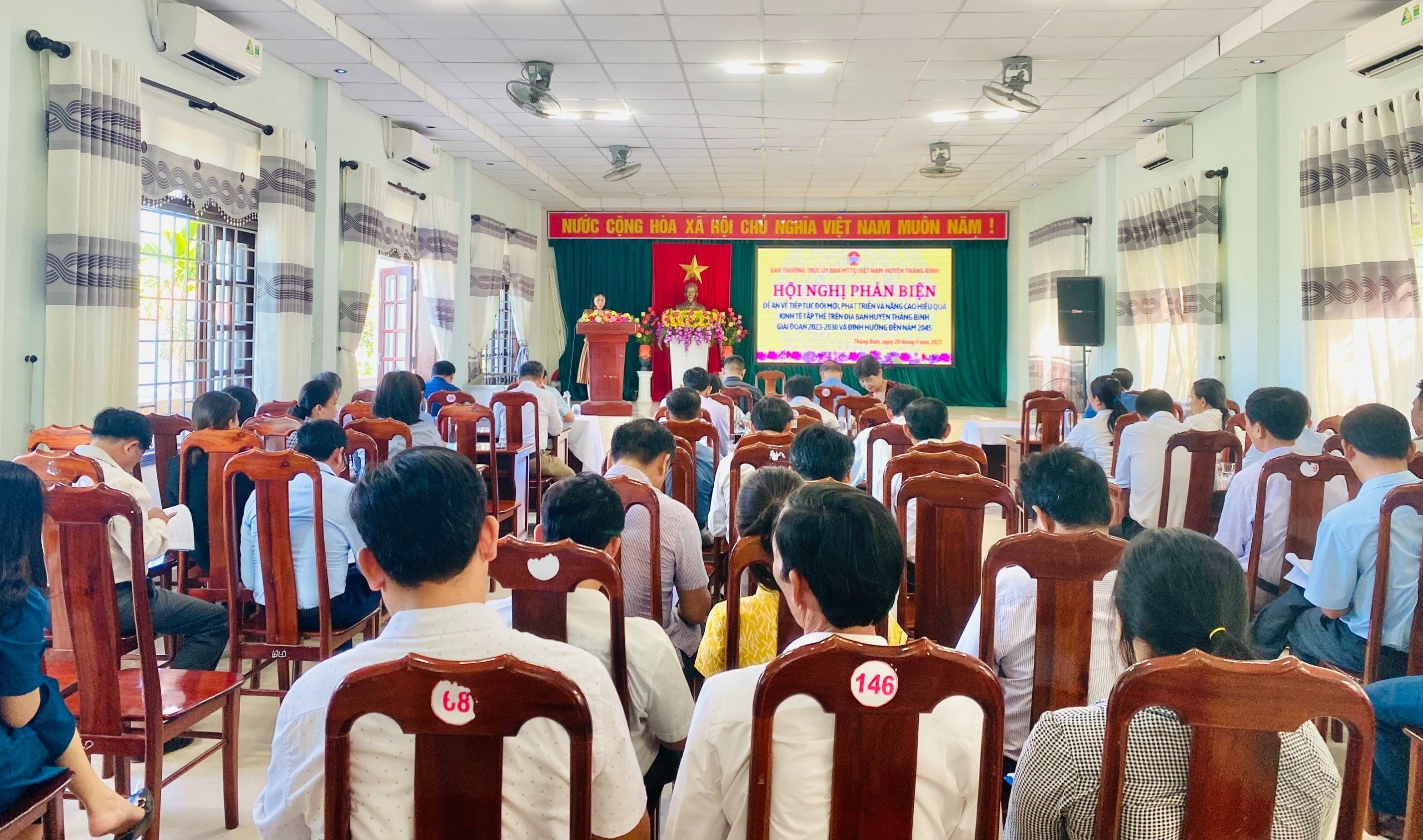 Tham dự hội nghị phản biện, Ban Thường trực Ủy ban MTTQ Việt Nam huyện đã mời chuyên gia: ông Lê Ngọc Trung - Phó Chủ tịch phụ trách Liên minh Hợp tác xã tỉnh; ông Trương Công Sơn - HUV, Phó Chủ tịch UBND huyện; đại diện cơ quan soạn thảo Đề án; đại biểu lãnh đạo các Ban của HĐND huyện, các tổ chức chính trị - xã hội huyện, các phòng, ban liên quan; đại diện Ban Tư vấn của Ủy ban MTTQ Việt Nam huyện; đại biểu lãnh đạo UBND, Ban Thường trực Ủy ban MTTQ Việt Nam, các Hợp tác xã (HTX) tại 22 xã, thị trấn trên địa bàn huyện. Ông Nguyễn Văn Đông - HUV, Phó Chủ tịch Ủy ban MTTQ Việt Nam huyện chủ trì hội nghị.