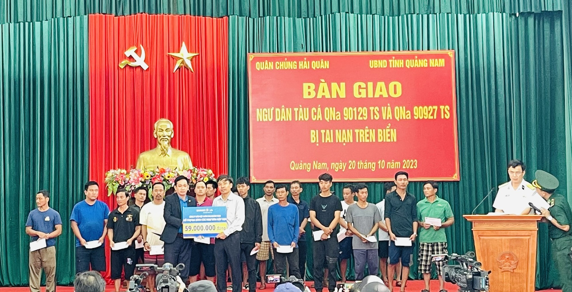 Trước mắt, huyện trích ngân sách Nhà nước hỗ trợ gia đình có thuyền viên chết 18.000.000đ/người, gia đình người có thuyền viên mất tích 5.000.000đ/người; đối với 78 thuyền viên may mắn trở về, hỗ trợ mỗi thuyền viên 1.000.000đ từ nguồn vận động của Ban Cứu trợ huyện. Ngoài ra, tại buổi đón thuyền viên cũng đã có các cơ quan, đơn vị, các nhà tài trợ đến tham gia hỗ trợ các gia đình ngư dân gặp nạn với tổng số tiền hỗ trợ là 315.000.000đ trong đó Liên đoàn lao động tỉnh 84.000.000đ, Hội Nông dân tỉnh 15.000.000đ, Hội Doanh nhân trẻ Quảng Nam 45.000.000đ, Hội khởi nghiệp thành phố Tam Kỳ 15.000.000đ, UBND xã Tam Giang 39.000.000, Bảo Việt nhân thọ Quảng Nam 59.000.000đ, Bảo hiểm AIA Quảng Nam 58.000.000đ./.