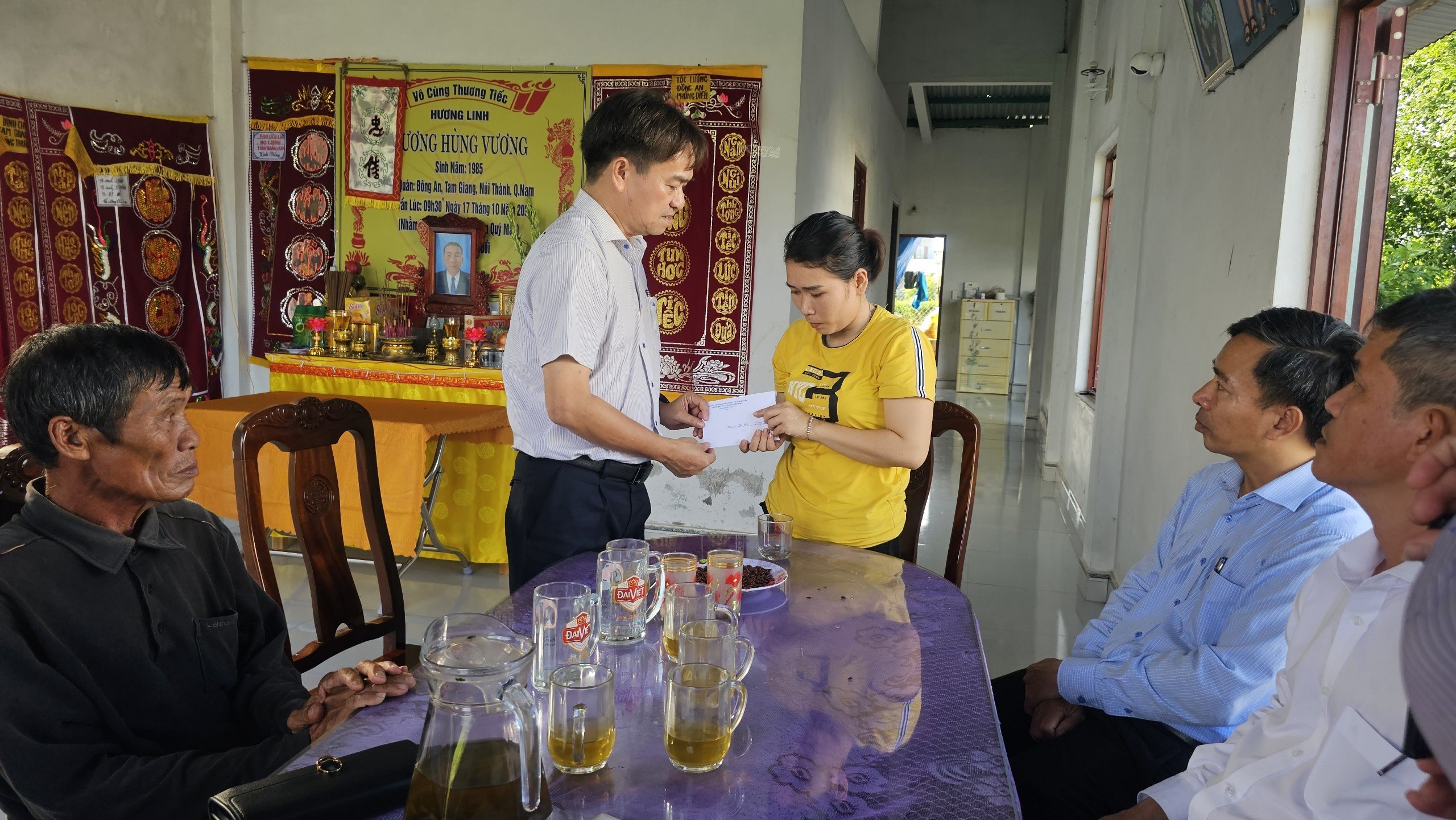Chiều cùng ngày, đoàn công tác cũng đã đến thăm hỏi, hỗ trợ 01 trường hợp tại thôn Hòa Hạ- xã Tam Thanh với số tiền là 2 triệu đồng, đây cũng là nạn nhân trong vụ chìm thuyền tại vùng biển huyện Núi Thành, may mắn sống sót và được trở về nhà an toàn.