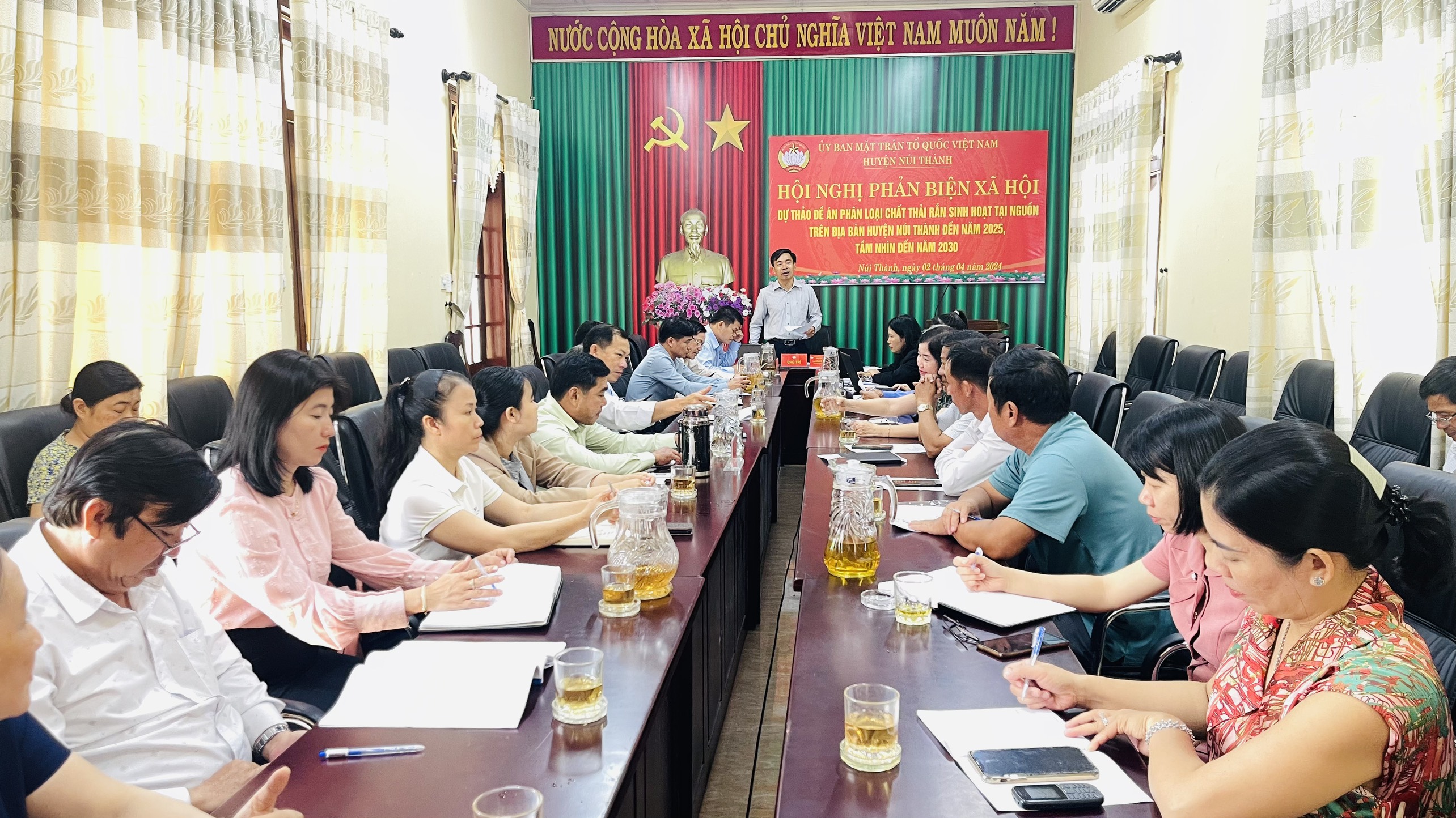 Đại diện cho cơ quan soạn thảo dự thảo Đề án, bà Bùi Thị Hồng, Phó Trưởng phòng Tài nguyên và môi trường huyện đã thông qua tóm tắt dự thảo Đề án với các nội dung như thực trạng phát sinh, quản lý, thu gom và xử lý chất thải rắn sinh hoạt trên địa bàn huyện hiện nay; tính khả thi mà mục tiêu của Đề án hướng đến; phương án phân loại, thu gom, lưu giữ, xử lý chất thải rắn sinh hoạt; các mô hình giảm thiểu rác thải thí điểm tại các xã, thị trấn; các phương pháp tuyên truyền, tập huấn về phân loại CTRSH và nâng cao nhận thức cho người dân, kinh phí phân bổ để tổ chức thực hiện các nội dung trong Đề án; việc phân công nhiệm vụ cho các cơ quan trong tổ chức thực hiện Đề án...
