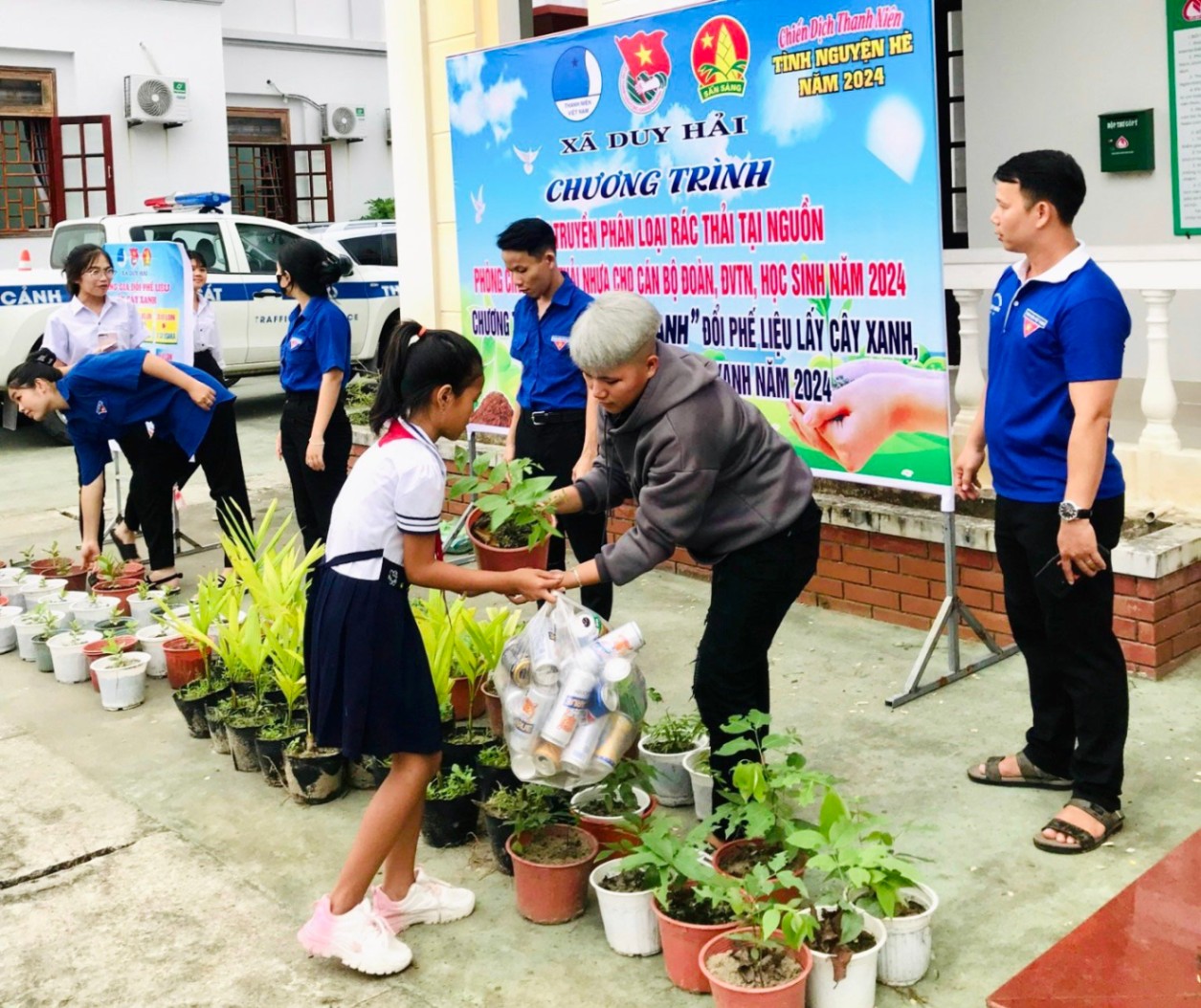 Đầu tháng 6, Đoàn TNCS Hồ Chí Minh xã Duy Hải phát động chương trình “Hành trình xanh”, đổi rác lấy cây xanh từ mô hình “Vườn ươm thanh niên”. Anh Nguyễn Linh - Bí thư Đoàn xã Duy Hải cho biết, vườn ươm của Đoàn xã hiện có 1.000 cây, 3 vườn ươm của chi đoàn thôn có 200 cây giống như kiwi, cốc, cau, dừa, ổi… Với mức quy đổi 10 nghìn đồng/cây, sau gần một tháng phát động đã đổi được 100 cây ăn quả, thu quỹ 1 triệu đồng. Theo anh Linh, chương trình này không chỉ truyền thông cộng đồng từ bỏ thói quen sử dụng sản phẩm nhựa dùng một lần, vứt rác thải bừa bãi, phát động phong trào trồng cây xanh mà còn phát huy hiệu quả vườn ươm thanh niên, tạo nguồn quỹ đoàn.