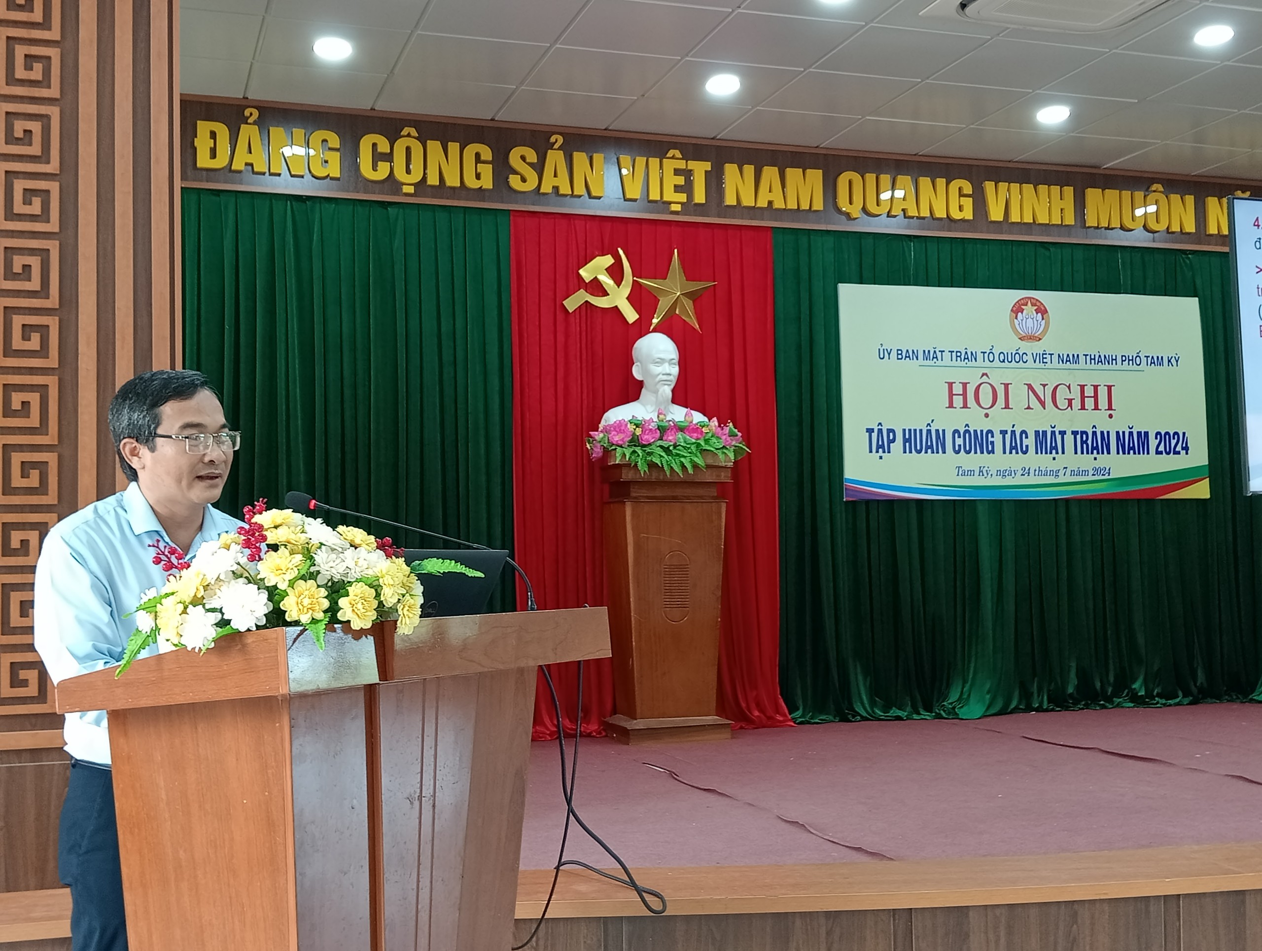 Sáng ngày 24/7, Ủy ban MTTQ Việt Nam thành phố Tam Kỳ tổ chức Hội nghị tập huấn công tác Mặt trận cho hơn 110 vị là Ủy viên ủy ban, thành viên các Ban tư vấn của Ủy ban MTTQ Việt Nam thành phố nhiệm kỳ 2024-2029, cán bộ làm công tác Mặt trận các cấp trên địa bàn thành phố.