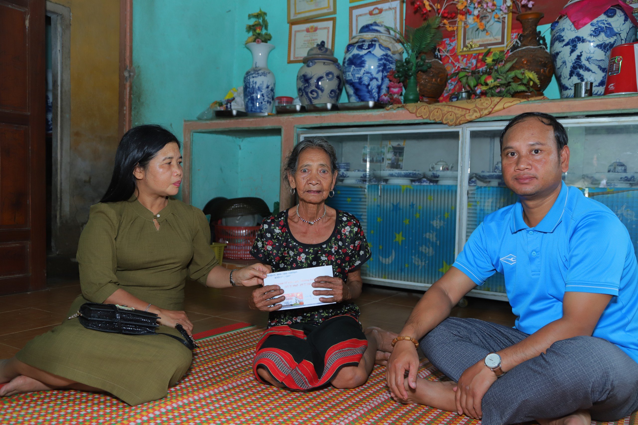 đến thăm bệnh binh Bríu Thị Bươm - Thôn Pà Nai - Xã Tà Lu