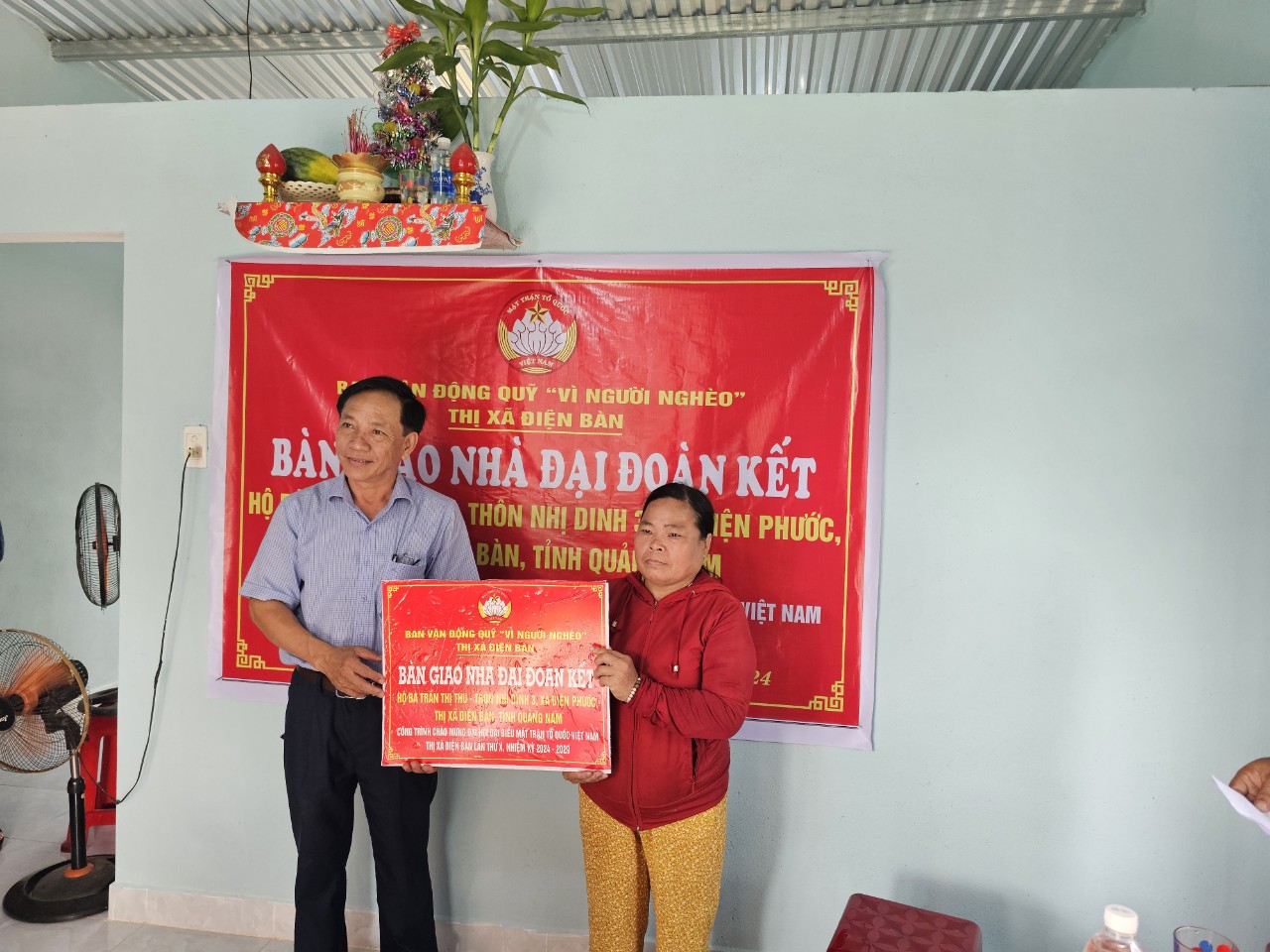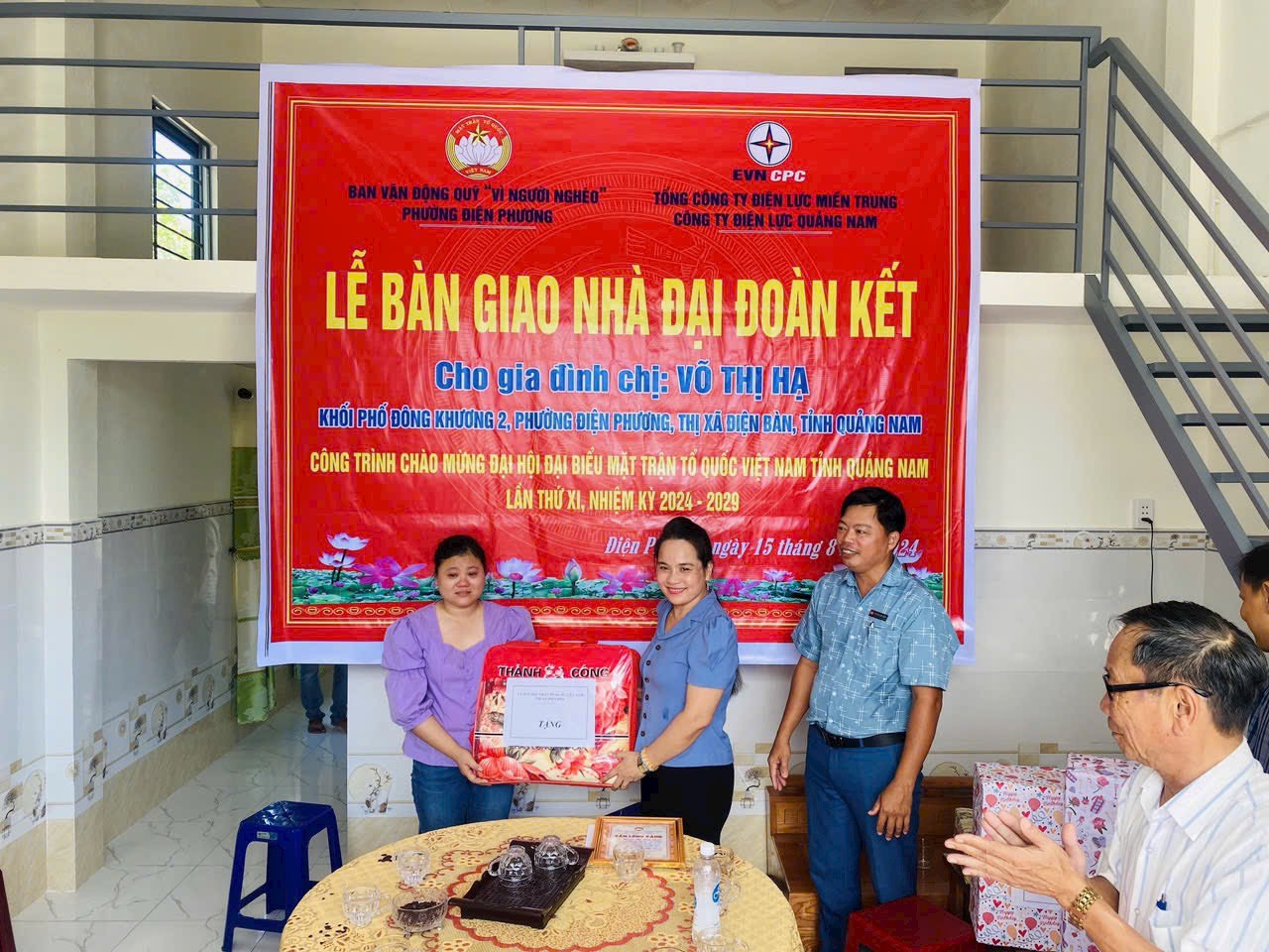 Từ tháng 11 năm 2023 đến tháng 6 năm 2024, MTTQ Việt Nam phường Điện Phương đã vận động doanh nghiệp, nhà hảo tâm và trích từ nguồn quỹ “Vì người nghèo” của phường xây dựng mới 04 ngôi nhà, sửa chữa 01 ngôi nhà với tổng kinh phí 730 triệu đồng, trong đó các hộ gia đình góp 290 triệu đồng.
