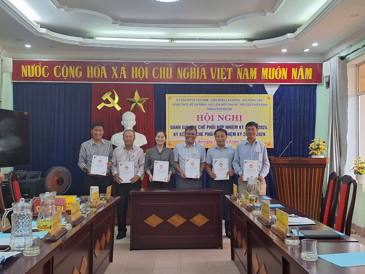 Chiều 11/9, Ủy ban MTTQ Việt Nam thành phố Hội An tổ chức hội nghị đánh giá quy chế phối hợp công tác giữa Mặt trận và các tổ chức chính trị - xã hội thành phố (giai đoạn 2019-2024), ký kết quy chế phối hợp giai đoạn 2024-2029. Đồng chí Trần Tấn Dũng, UV BTV Thành ủy, Chủ tịch Ủy ban MTTQ Việt Nam thành phố chủ trì hội nghị. Dự hội nghị có các đồng chí: Lê Chơi - Phó Bí thư Thường trực Thành ủy, Kiều Văn Sang - Phó Trưởng Ban Dân vận Thành ủy và tập thể lãnh đạo, công chức các cơ quan.
