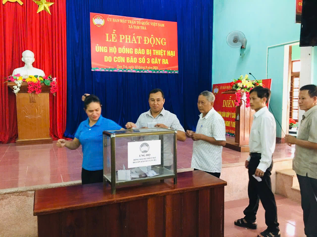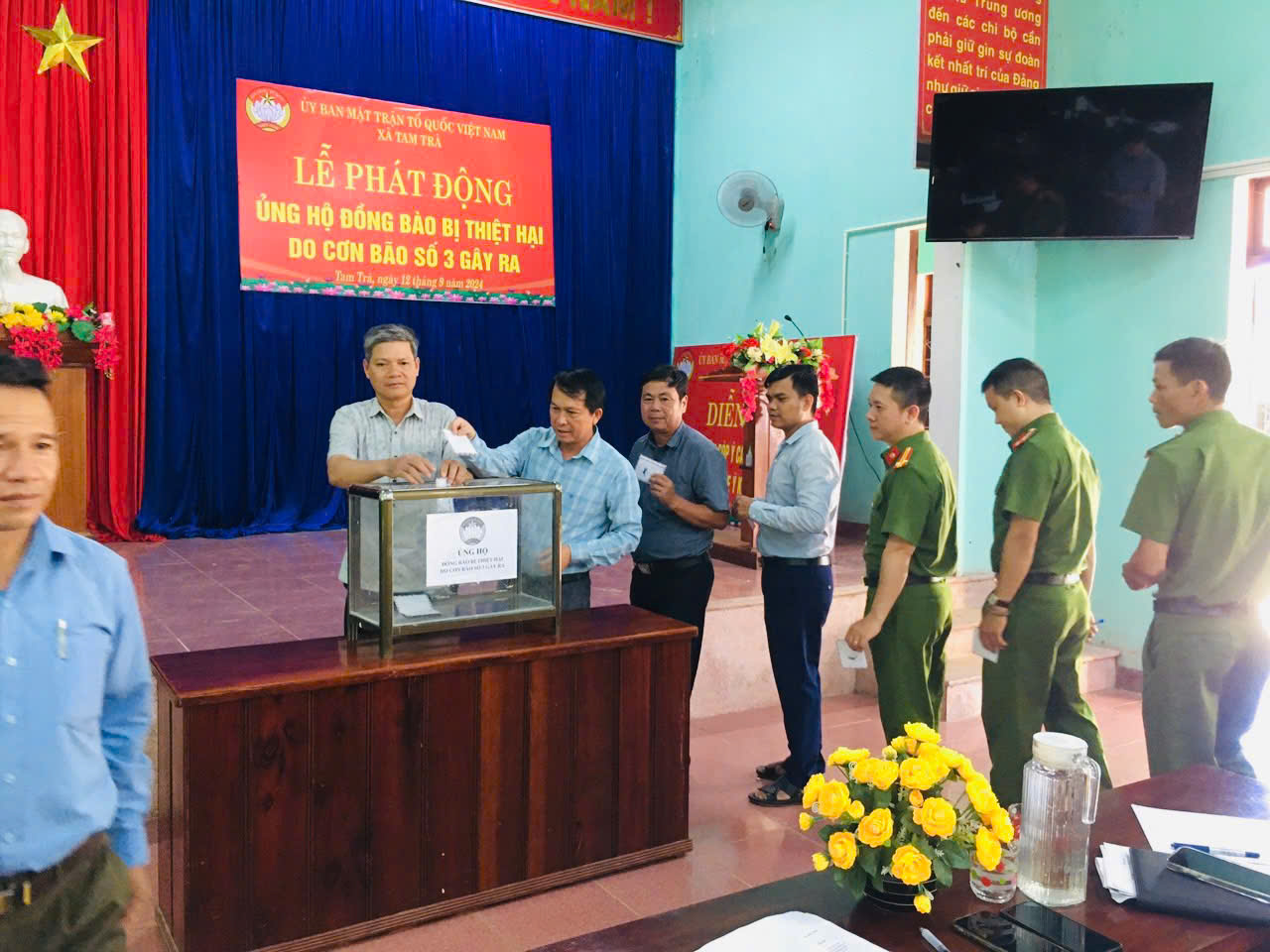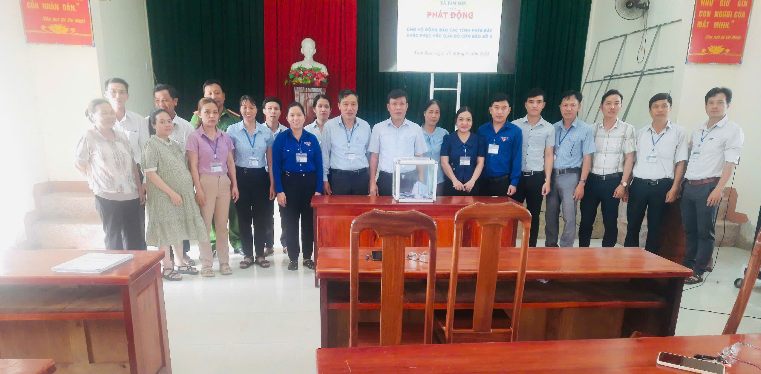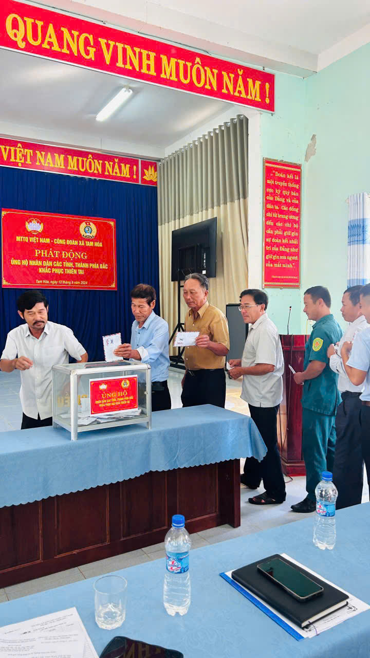 Đến nay đã có 04 xã tổ chức phát động quyên góp trong cán bộ, đoàn hội viên ủng hộ đồng bào các tỉnh thành miền Bắc gồm Tam Hoà, Tam Sơn, Tam Trà, Tam Xuân II với tổng số tiền mặt quyên góp đến thời điểm hiện tại là 64.515.000 đồng và nhiều suất quà hiện vật với tổng giá trị khoảng 54.000.000 đồng.