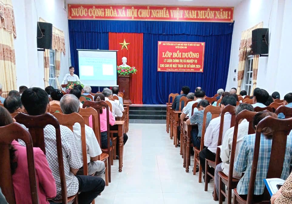 Ngày 18.9, Ủy ban MTTQ Việt Nam huyện Nông Sơn phối hợp với Ban Tuyên giáo Huyện ủy tổ chức lớp bồi dưỡng lý luận chính trị và tập huấn nghiệp vụ cho cán bộ Mặt trận cơ sở năm 2024.