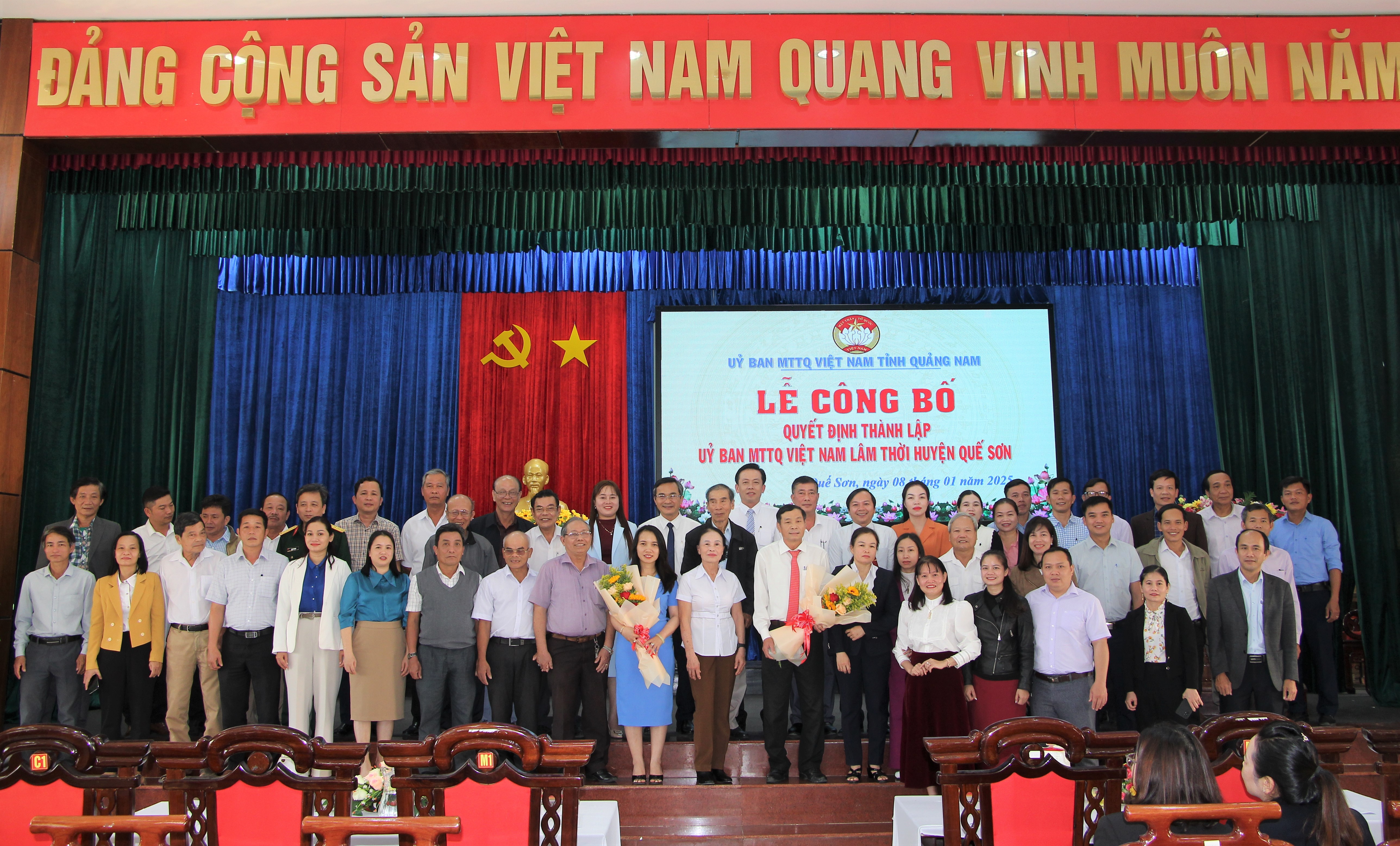Thành lập Ủy ban Mặt trận Tổ quốc Việt Nam lâm thời huyện Quế Sơn trên cơ sở sáp nhập Ủy ban Mặt trận Tổ quốc Việt Nam huyện Nông Sơn (cũ) vào Ủy ban Mặt trận Tổ quốc Việt Nam huyện Quế Sơn (cũ), gồm: 102 vị ủy viên