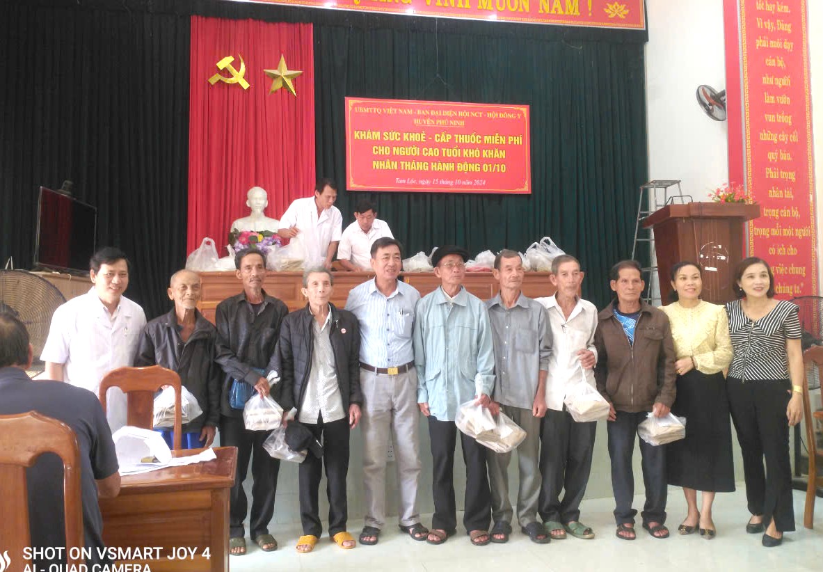 Trong thời gian 01 buổi, 50 người thuộc diện người cao tuổi có hoàn cảnh đặc biệt khó khăn trên địa bàn xã Tam Lộc, xã Tam Thành đã được Chương trình tặng những phần quà ý nghĩa và được các Thầy thuốc, Lương y của Hội Đông y huyện Phú Ninh tận tình khám sàng lọc, kiểm tra huyết áp, bắt mạch…cấp thuốc y học cổ truyền miễn phí để điều trị một số bệnh ở người lớn tuổi như: mất ngủ, cao huyết áp, cảm cúm, đau nhức xương khớp, đau thần kinh tọa, rối loạn tiêu hóa… Đồng thời tư vấn chăm sóc sức khoẻ, chế độ ăn uống, tập luyện, nghỉ ngơi hợp lý, cách phòng tránh một số bệnh theo mùa và tuyên truyền, vận động, hướng dẫn trồng cây thuốc nam tại nhà, phục vụ chữa bệnh bằng y học cổ truyền. Tổng kinh phí thực hiện chương trình trên 15 triệu đồng từ nguồn xã hội hóa.